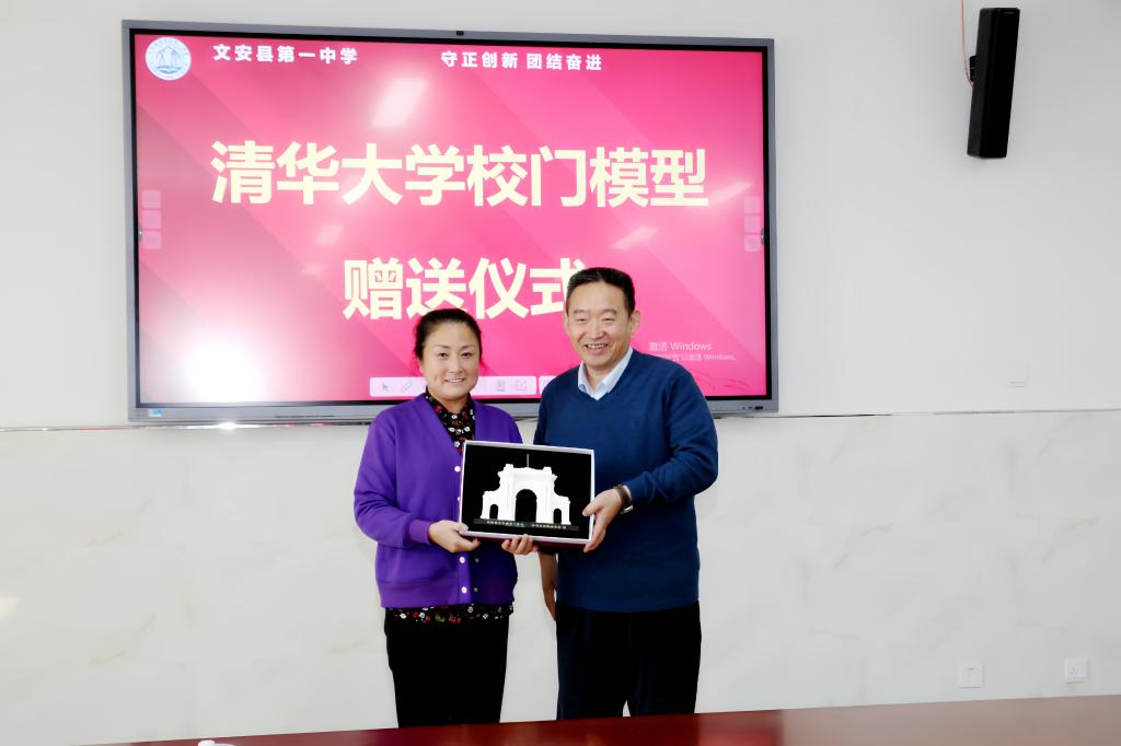 向文安一中赠送清华大学二校门模型
