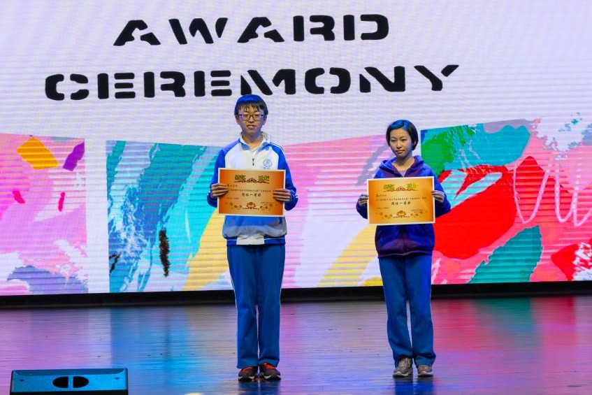 比赛中,每到抽签环节,同学们都欢呼雀跃,热情高涨。同时,本次比赛还设置了“精彩展示”环节:比赛接近尾声时,从六组在班内预演中表现优异的队伍中抽出两组进行表演。此环节将现场的气氛又一次推向了高潮。