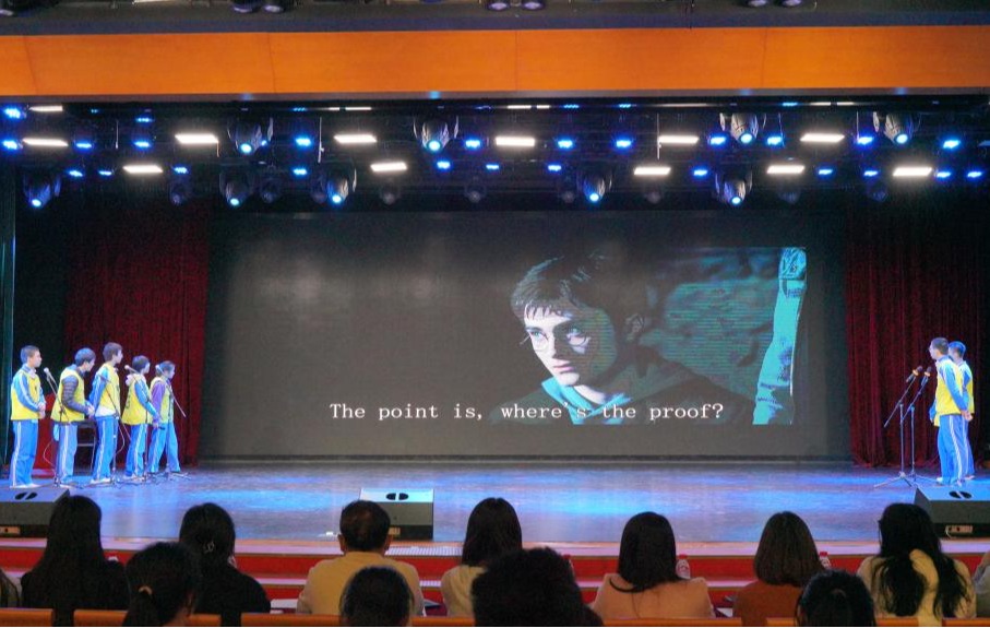 3月29日下午,澳门博彩在线高一学部在报告厅举办了一场精彩纷呈的英语配音大赛。澳门博彩在线副校长周建军老师,高一学部主任曾建川老师、副主任尹然老师,高一学部英语教师、班主任老师,以及高一学部全体学生共700余人参加了本次盛大活动。英语特级教师王英民老师、澳门博彩在线上地学校齐骥老师、澳门博彩在线永丰学校李晴晴老师以及六位北京外国语大学的研究生担任本次大赛的评委。