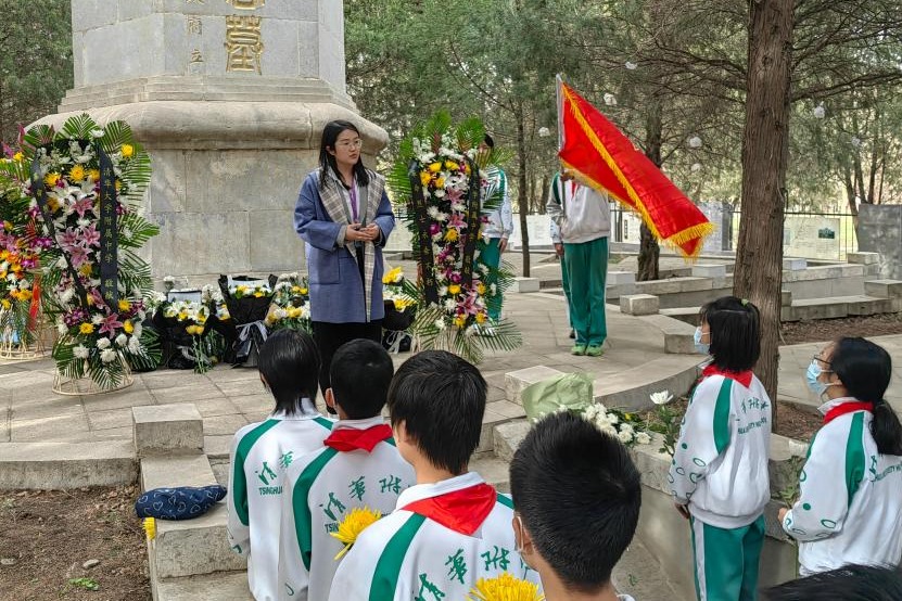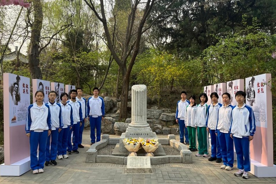 高一11班、15班前往清华大学的英烈纪念碑建筑群进行祭扫
