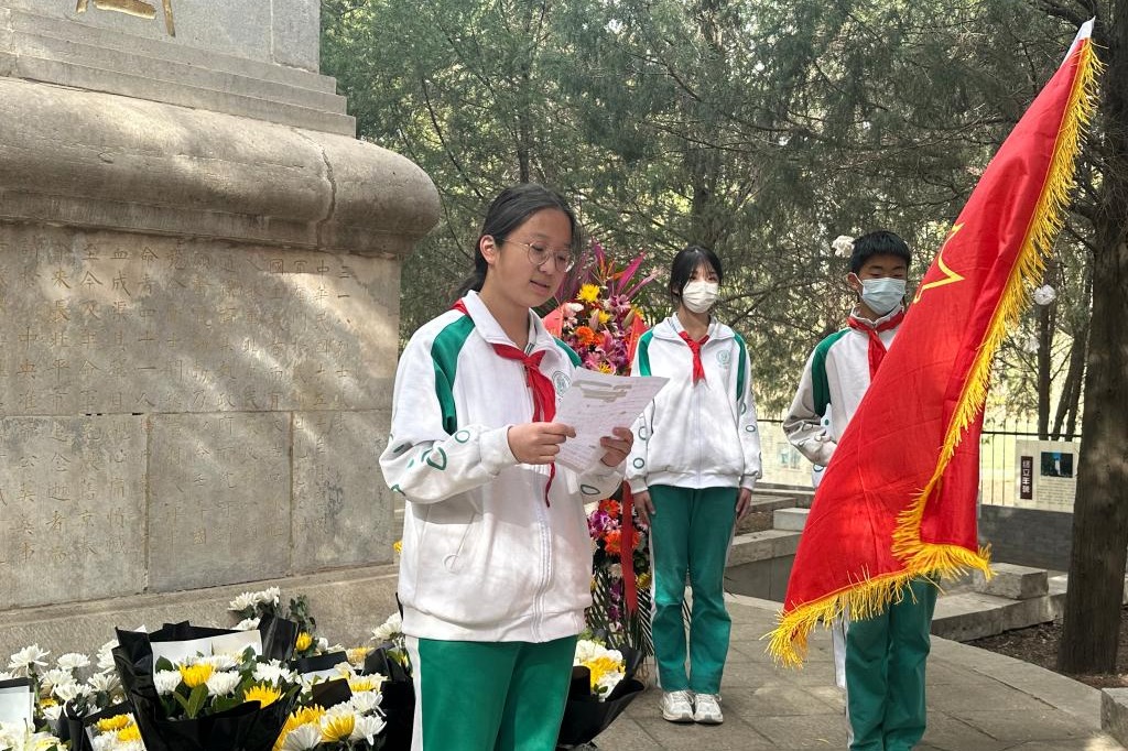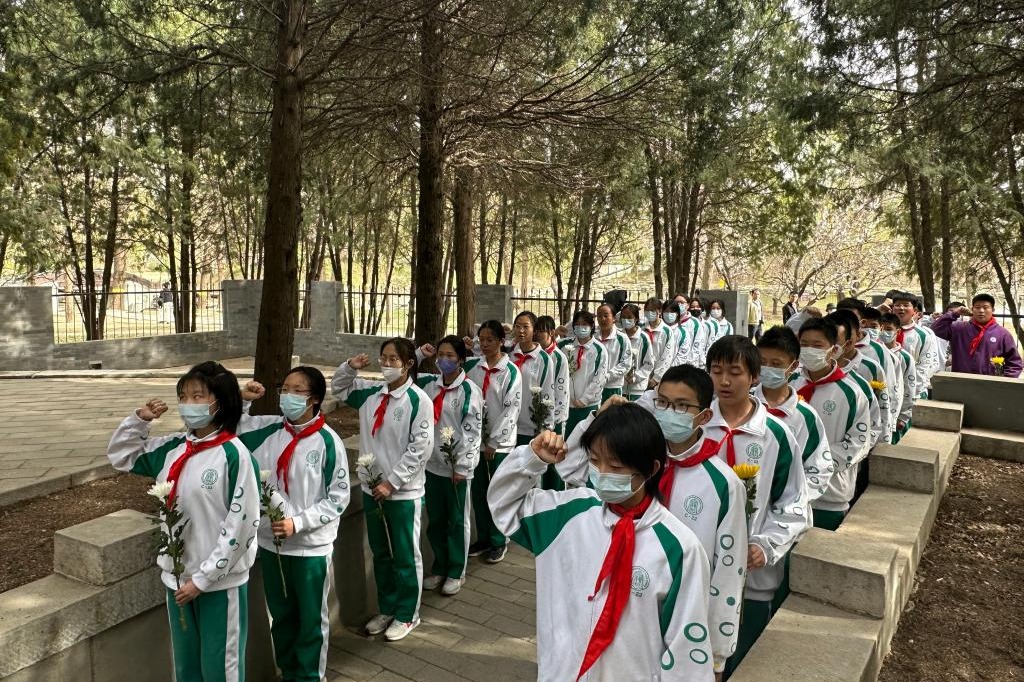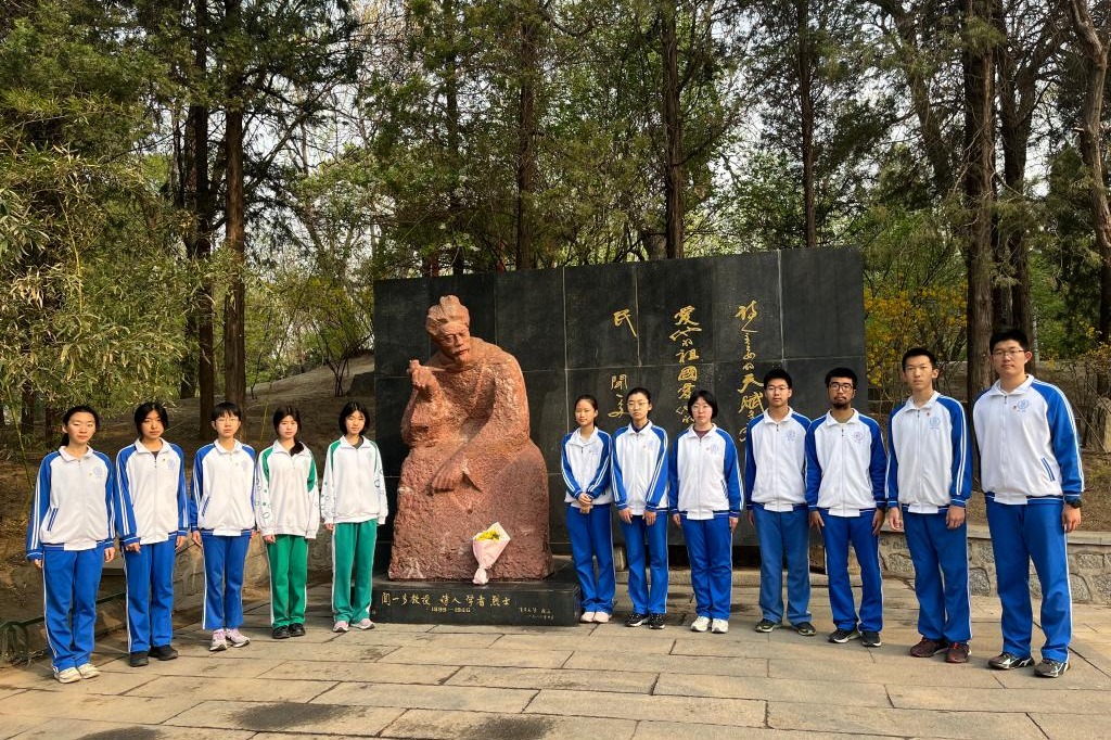 高一11班、15班在清明特色主题班会中组织全体同学一起前往清华大学的英烈纪念碑建筑群进行祭扫。同学们献上鲜花,表达对先烈的敬意。高一5班采用线上学习的活动形式,利用课余时间访问中华烈士网、清华大学红色网站等进行“云祭扫”。同学们通过多种形式,进一步了解学习先烈们的事迹与贡献,增强对历史的了解以及对先烈的敬仰。