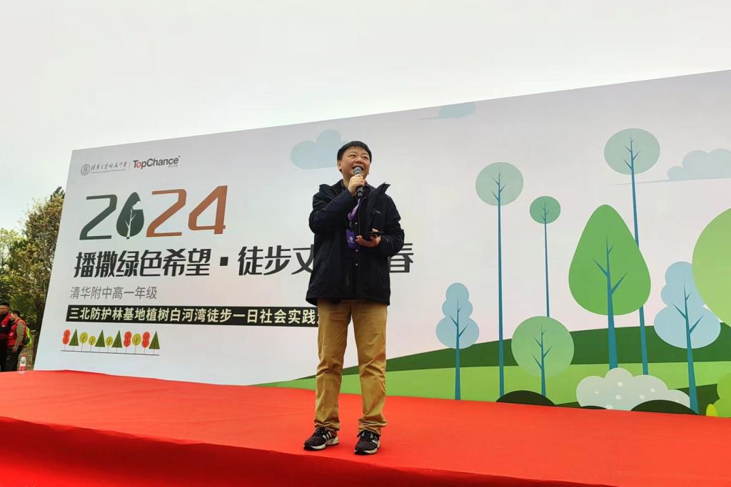 在三北防护林基地,高23学部主任曾建川发表动员讲话。他鼓励同学们响应党和国家建设“美丽中国”的号召,增进亲近自然、爱护自然的意识,并亲身投入到保护环境的社会实践当中。
