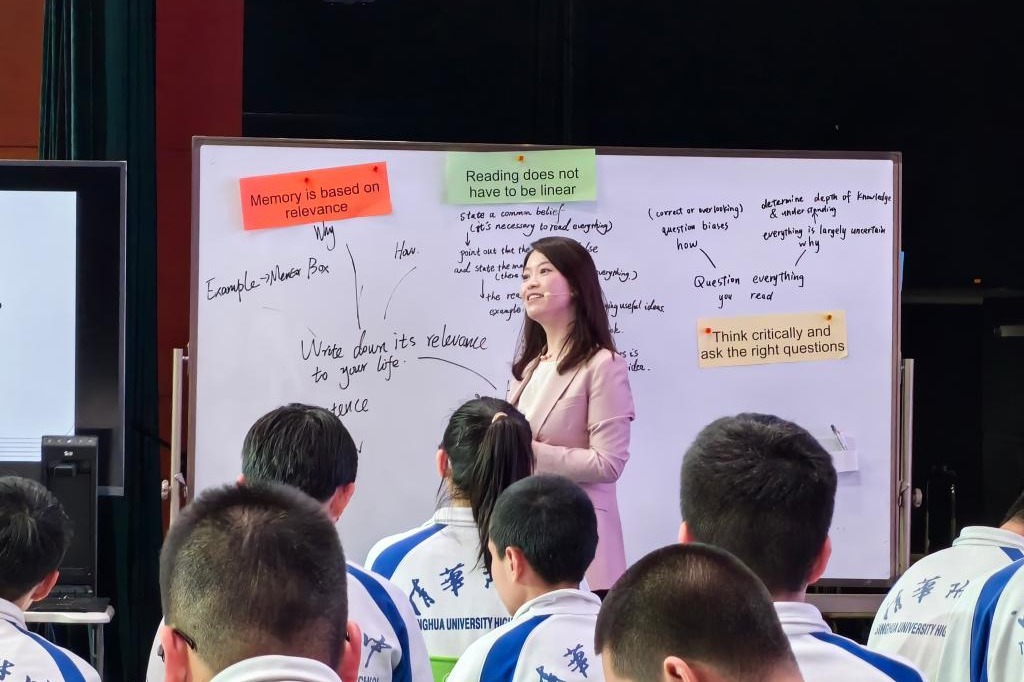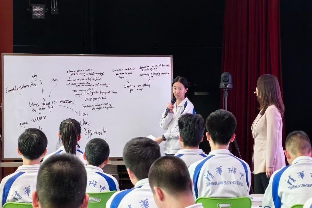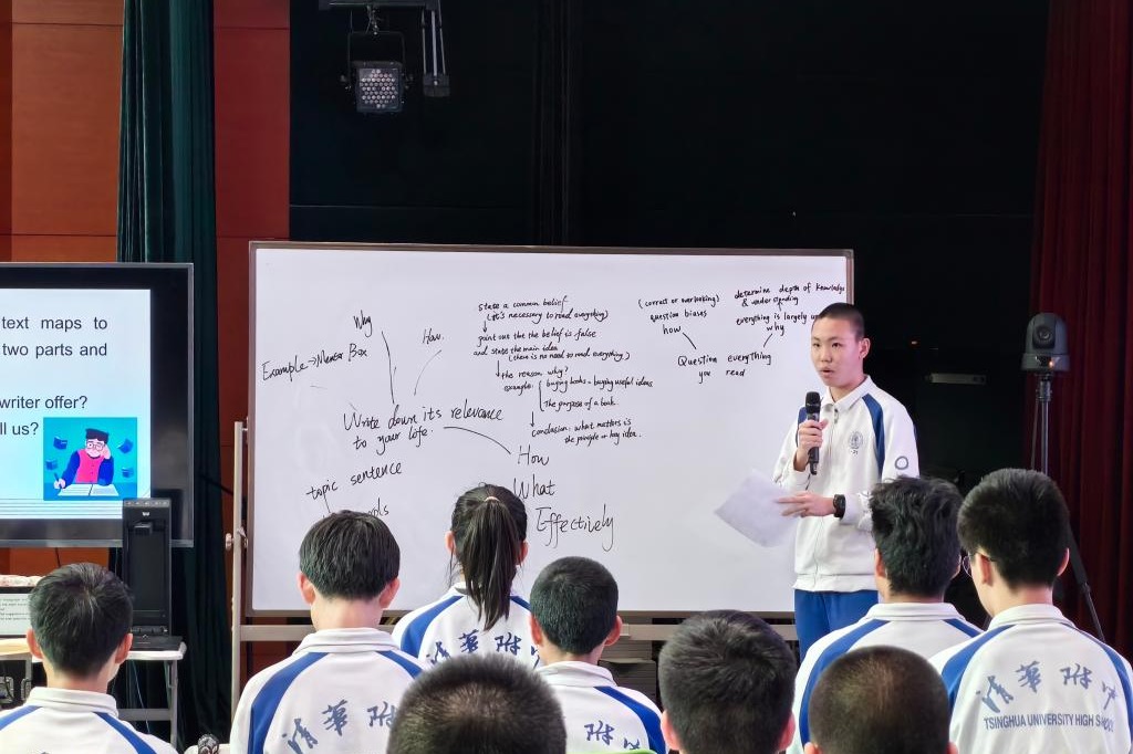 范皖晴老师展示了阅读研究课“How to become a better learner”。本节阅读课选取了一篇与“学习效率”紧密相关的说明文,在阅读中,让学生深入分析建议类文章的逻辑结构,通过画思维导图分析信息间的逻辑关系,总结、应用概括主旨技巧,深化对学习效率的理解和认识,为即将入学的学生提出有效学习建议做更充分的准备。同时,教师给学生选取多个学习方法相关语篇,课上课下结合阅读,以更有效地满足学生提高学习效率、应用科学方法的需求。