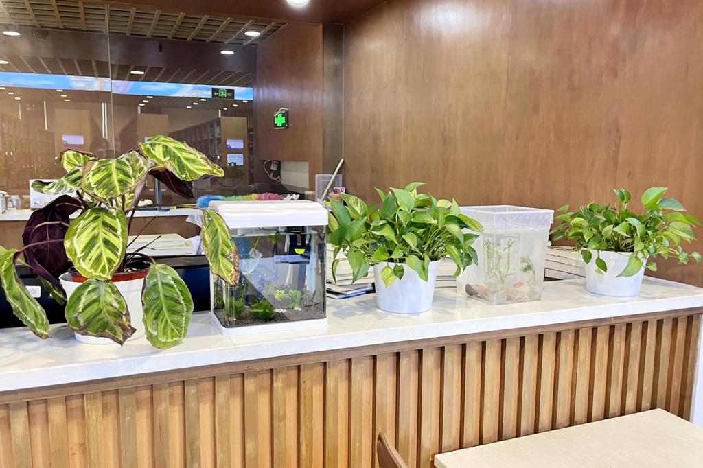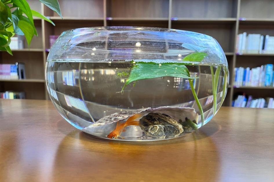 图书馆老师利用废旧的花盆,自费购买金鱼,在图书馆内“孵化”建立了“鱼之乐”社团。社团学生定期到图书馆喂食、换水、丰容等,阅读相关书籍。此次创新尝试吸引了众多同学前来,大家在观鱼赏鱼、阅读书目的过程中,舒缓压力,放松身心。