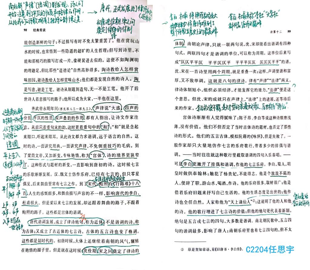 同学们仔细圈点批注,深入剖析《诗经》中古代人民的情感世界,感受《史记》《汉书》的历史厚重