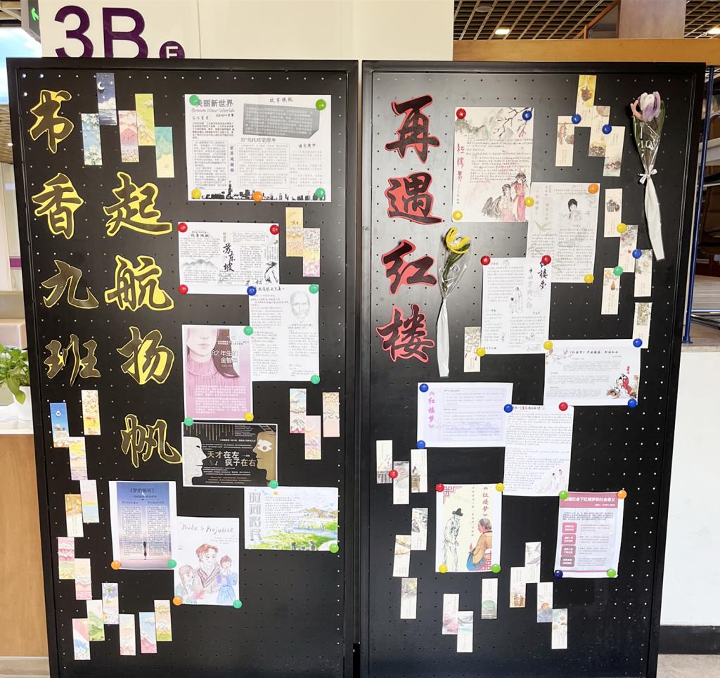 高一9班借助水木行动联合学校图书馆以“红楼”为主题开展图书海报制作等系列活动