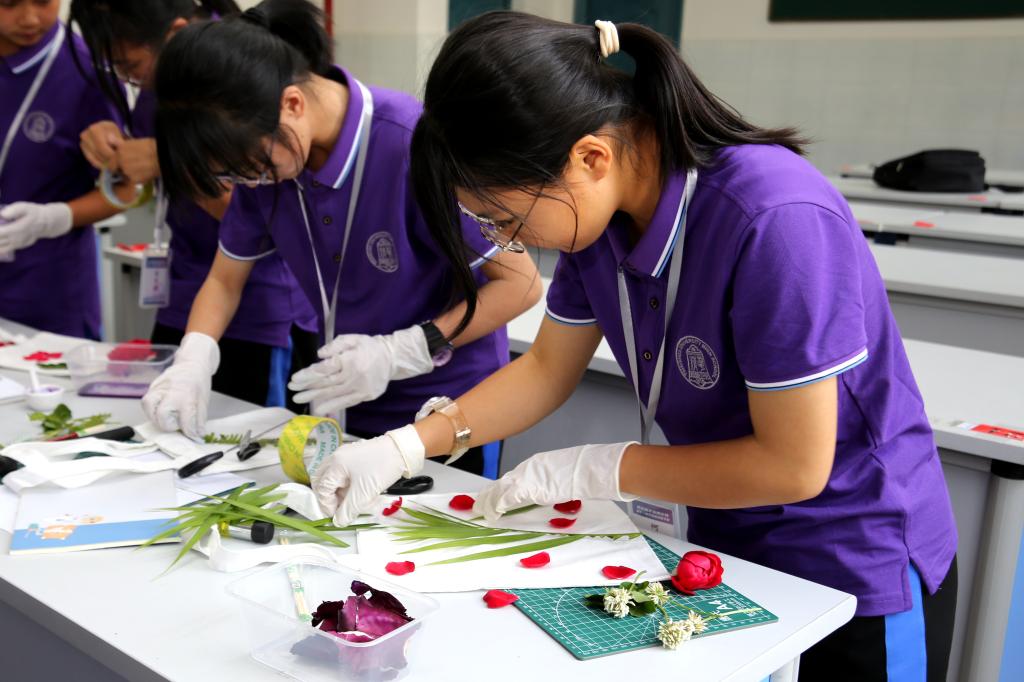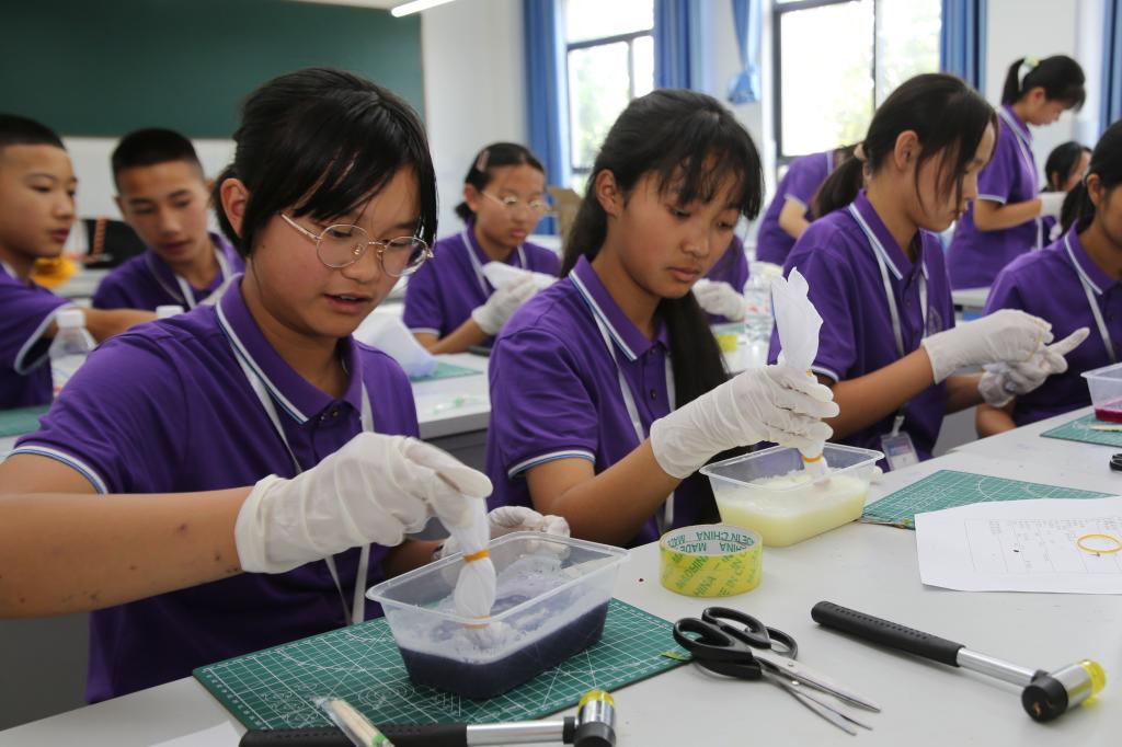 澳门网上博彩生物竞赛教师、生物实验员房鹏为学员们带来了植物的识别与扎染创作课程。房老师以南涧常见植物为例,引导学员识别和了解身边植物的科属,在此基础上开展扎染、拓然和衍纸的拓展和实践活动,并将其融入科学教育中,进一步丰富学生的艺术修养和文化修养,激发了学员对于生物学科学习的兴趣,提高了学员们学习的积极性和自主创新能力,帮助学员在未来在生物学科的可持续性学习打下良好基础。