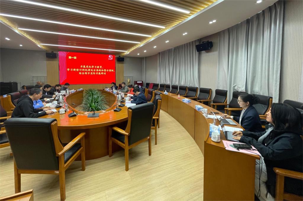党委委员王田作重点发言。他指出,《条例》的修订对于加强党的建设,推动全面从严治党具有重要意义。他表示,《条例》的学习不是一时一事的要求,要一以贯之,持续提升理论学习水平,始终与党的纪律建设要求保持一致;不断审视和改进自身工作,在日常工作中,积极贯彻《条例》精神,努力培养遵守纪律、品德高尚的学生。