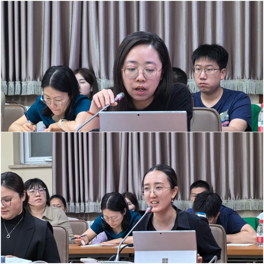 初2110班班主任张月瑶、初2114班班主任黄园袁发言