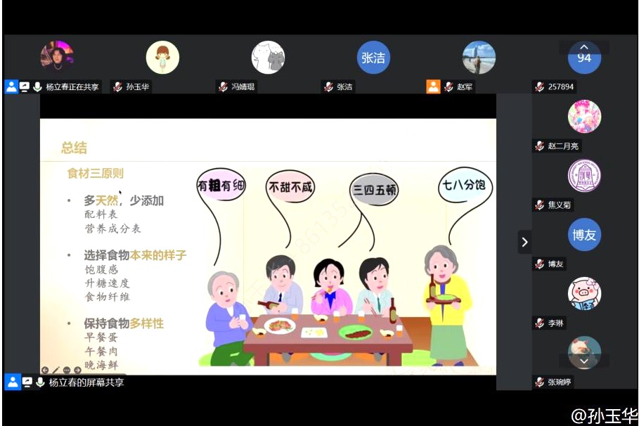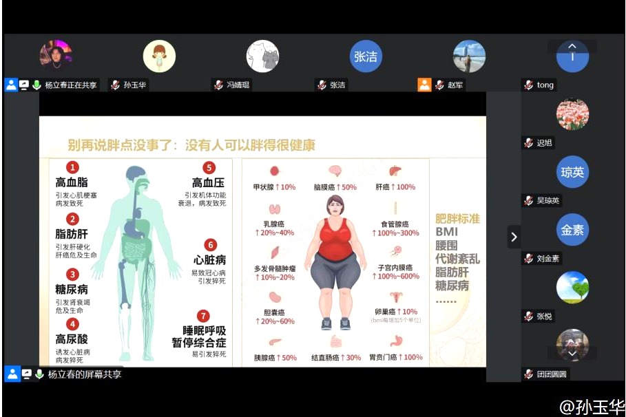 5月17日晚,澳门网上博彩工会邀请杨立春大夫为本部及将台路校区教职工及家属们做“科学减脂找回久违的轻盈感”的直播讲座。党委副书记兼工会主席张洁老师带领60多位教职工和部分家属线上聆听讲座。