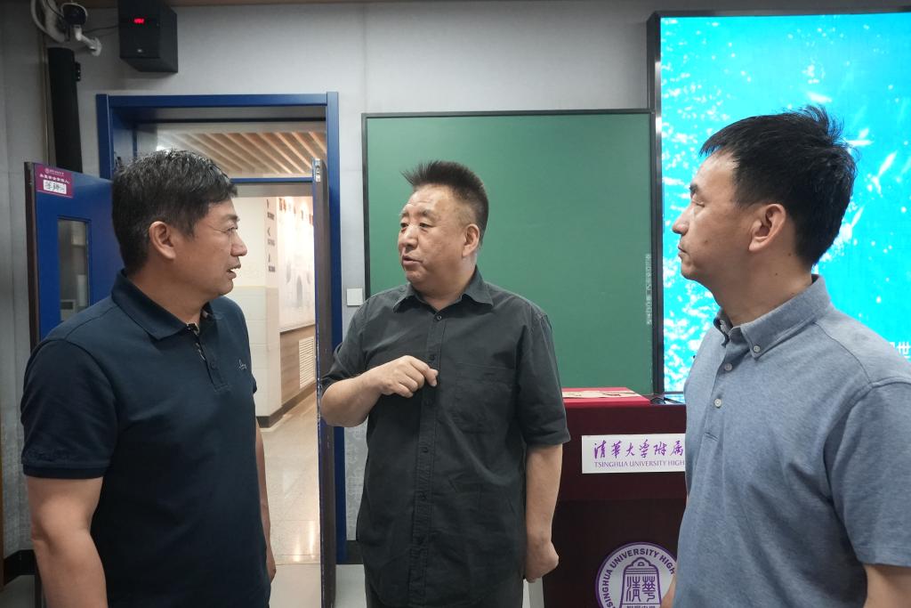 闫东导演(中)与曹海翔书记(右)、白雪峰副校长(左)进行交流