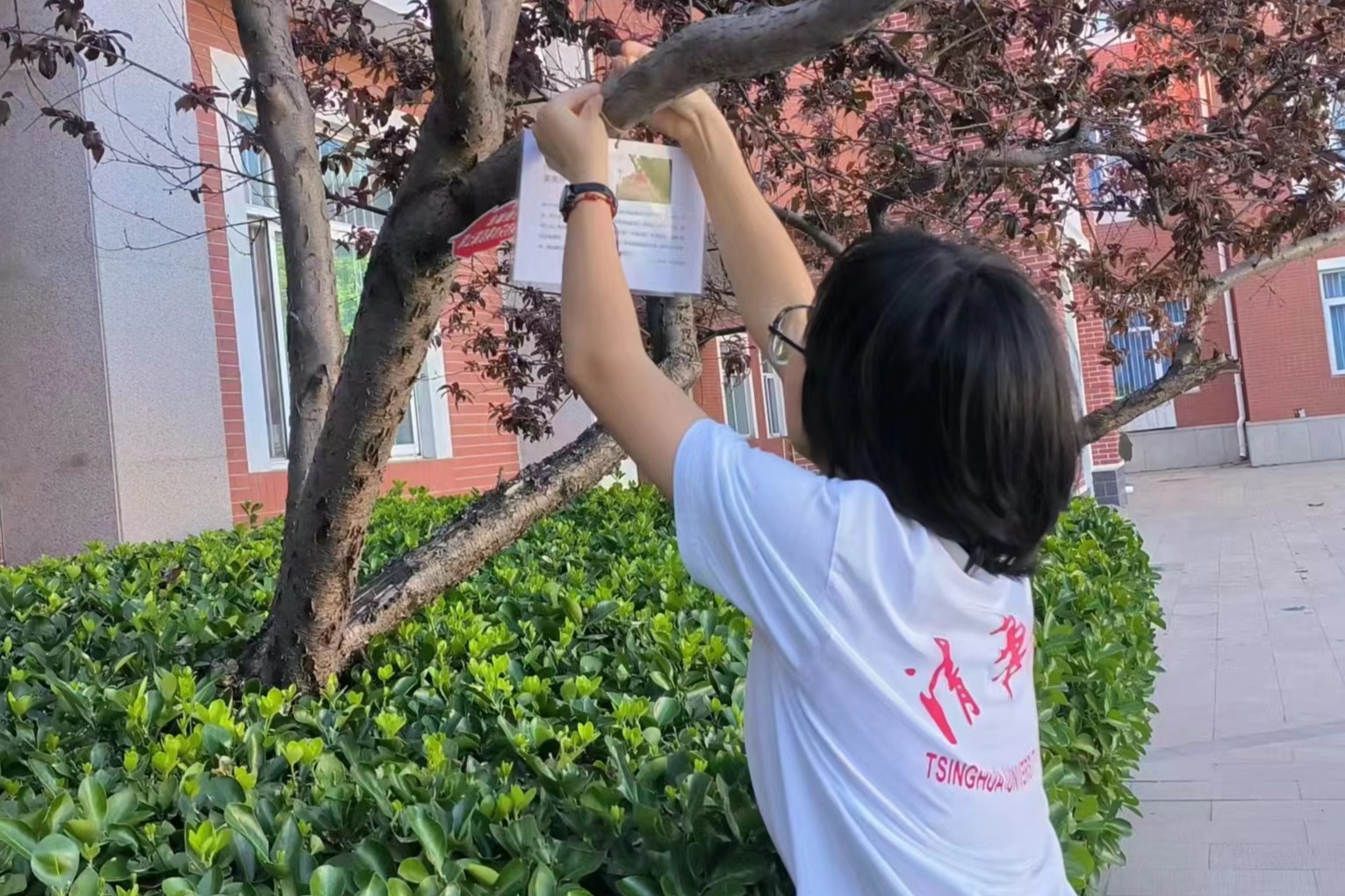 水木行动同学为校园植物制作名牌
