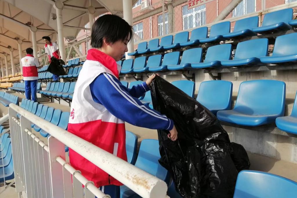 水木行动同学清扫操场看台