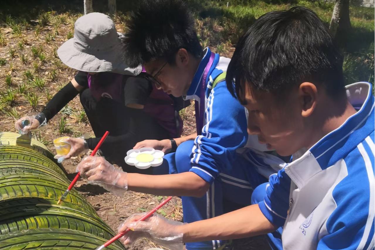 学生完成了彩绘轮胎