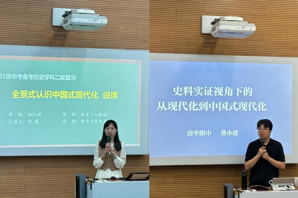 课题基地校北京市澳门博彩在线的宋薇、费小建老师,围绕一体化教学主题“中国式现代化”,分别进行了课堂教学和说课展示。宋薇老师呈现了初三学部研究课《全景式认识中国式现代化》(学生进入初三二轮复习阶段),费小建老师呈现了高二学部研究课《基于史料实证视角下的现代化到中国式现代化》(学生进入高三一轮复习阶段)。