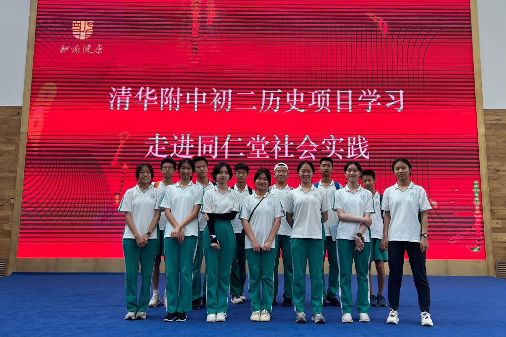 初二年级学生本学期学习的内容为中国现代史,学习过程中,学生对北京市公私合营的示范企业——同仁堂表现出极大的兴趣,希望能够深入了解社会主义改造这一中国历史上最深刻的社会变革。在初二历史备课组刘宁老师和王敏老师的指导下,学生开展了以同仁堂为主题的历史项目学习。通过两次实践活动,学生对比了同仁堂传统经营和新零售模式,更加体会到老字号的历久弥新,从社会大课堂中学习历史、感受历史、理解历史。新时代的同仁堂,担当起“为人民健康服务,促进中医药振兴”的光荣使命。新时代的附中学子,也必将担负起中华民族伟大复兴的历史重任。