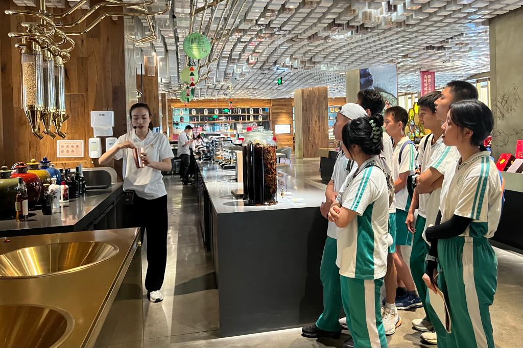 学生体验茶饮坊