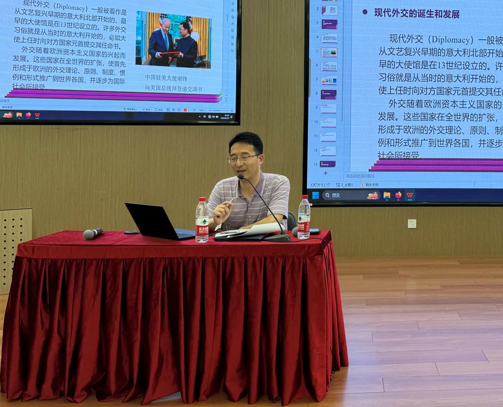 梁开业外交官以“走近中国外交——认识、体会和建议”为题,与同学们分享了他的外交经历和对国际关系的独到见解。梁先生从自身的职业生涯出发,讲述了中国外交的发展历程和当前面临的挑战与机遇。他强调,外交不仅需要扎实的专业知识,更需要敏锐的洞察力和卓越的沟通能力。他鼓励有志于从事外交事业的学生们,要注重培养多元文化的理解能力和解决问题的技巧,成为国家和世界的桥梁。