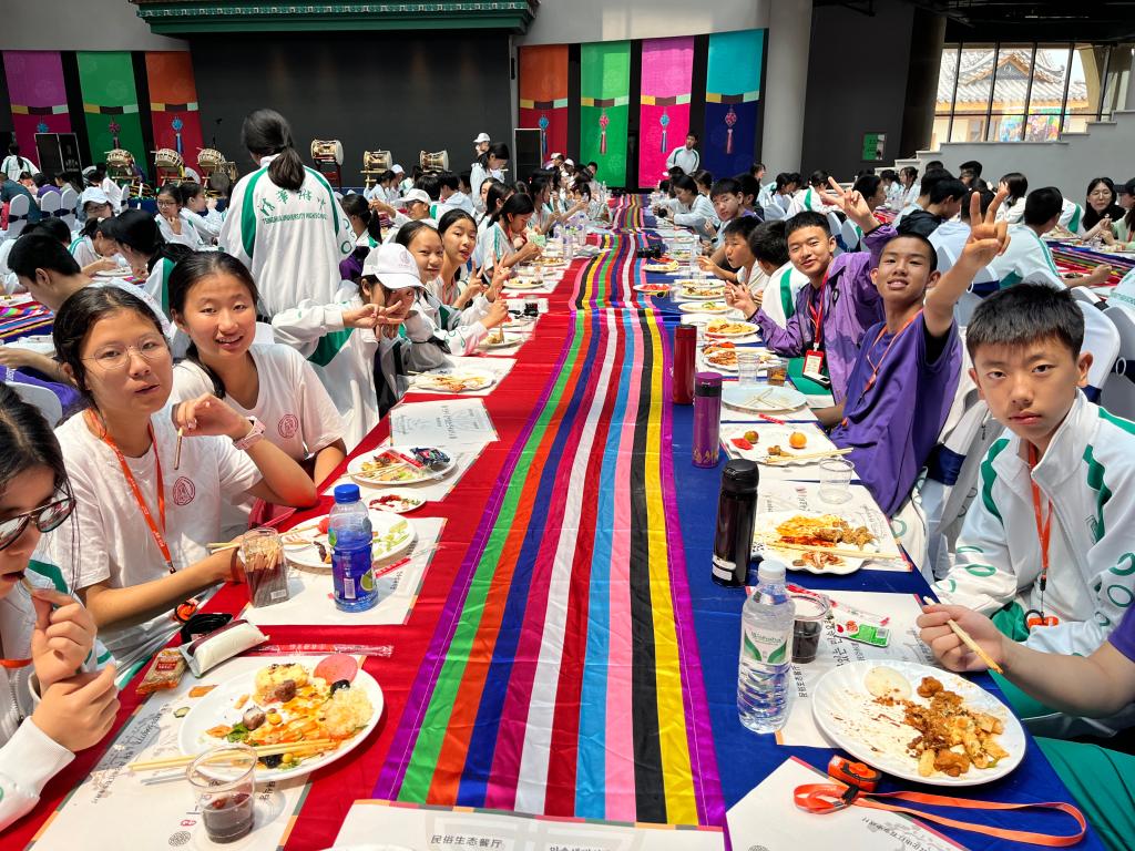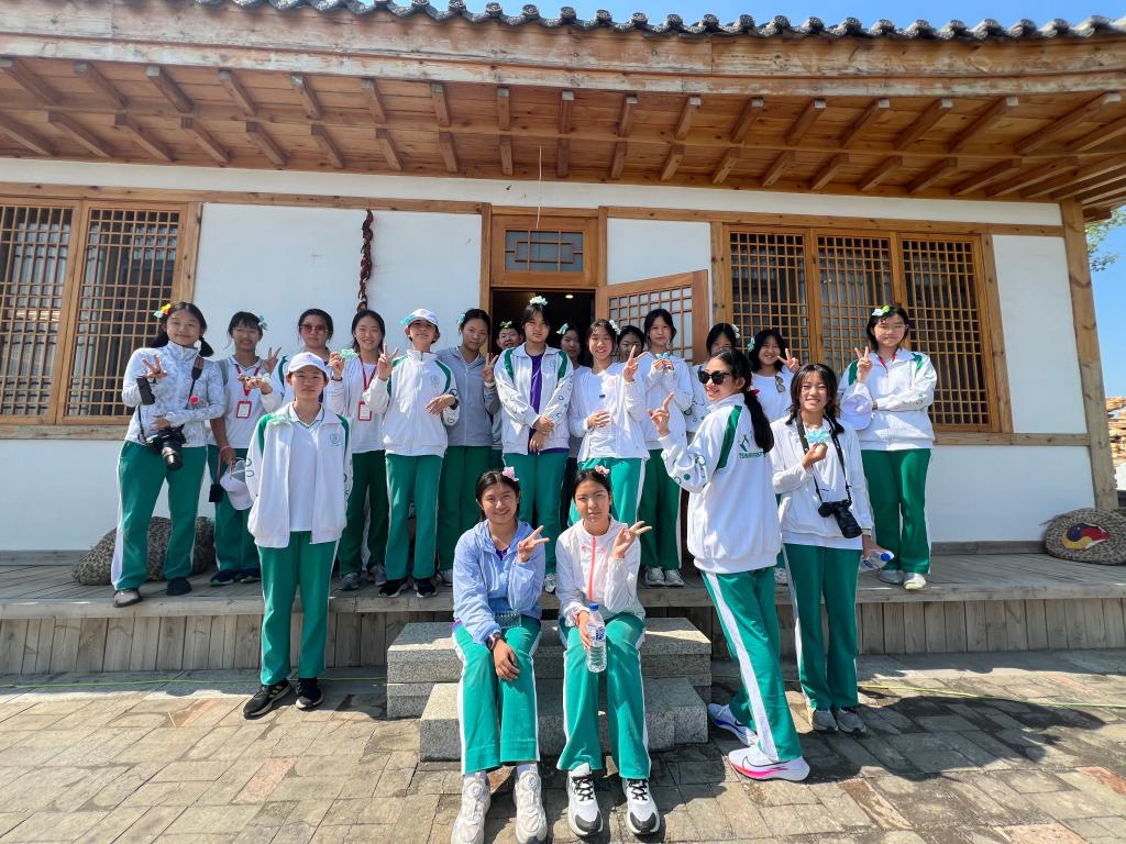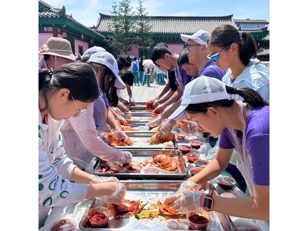 敦化朝鲜族民俗村为大家带来了丰富的文化体验。同学们在长桌宴上品尝朝鲜族美食,戴上朝鲜族传统帽子旋转起舞。亲手参与制作辣白菜、打糕,体验劳动的乐趣和美食的意义。穿戴朝鲜族传统服饰,学习头花制作,感受朝鲜族服饰艺术和审美。