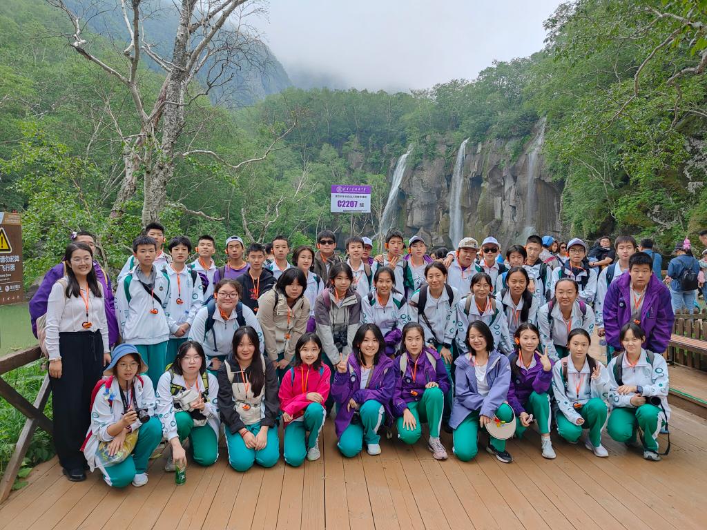 师生们登上长白山顶峰,目睹了天池的壮丽景色。徒步经过温泉瀑布,穿越长白山的谷底森林,感受着原始森林的神秘和生机。