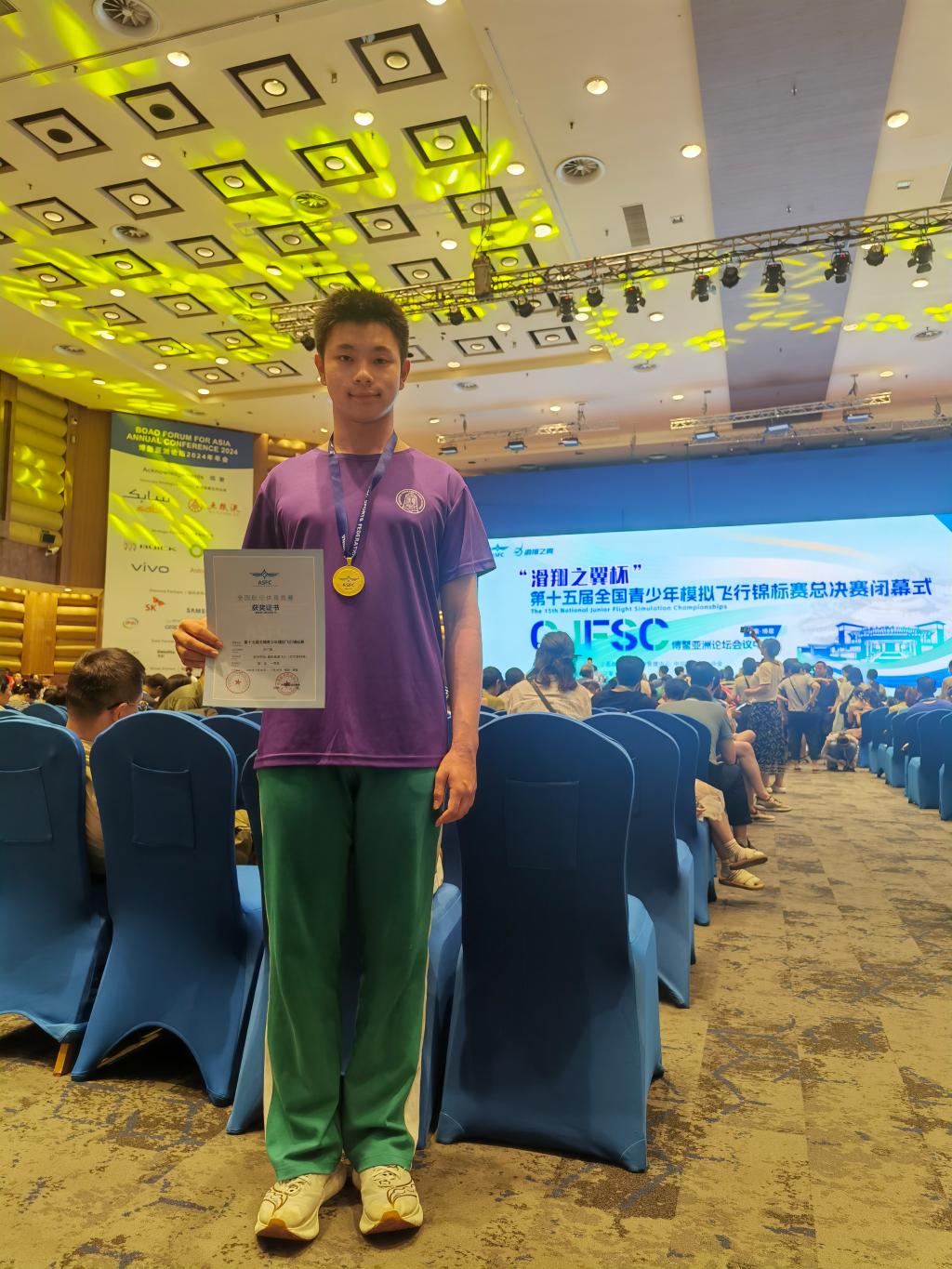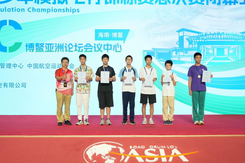 2024年7月25日至7月28日,第十五届全国青少年模拟飞行锦标赛总决赛在海南博鳌举行。经过北京市模拟飞行竞赛选拔,澳门博彩在线模拟飞行创客社团7名初22级学生和8名初23级学生,在澳门博彩在线波音∙牛顿飞行学院居重艳老师的带领下,代表学校参赛,共获得1枚金牌、4个一等奖、9个二等奖和4个三等奖。初22级沙广原、初22级金祖康、初23级张悉宇、初23级王启越四名同学分别获得趣味竞速甲组、本场五边飞行乙组、趣味竞速乙组、趣味竞速乙组项目一等奖,其中沙广原同学获得金牌;初22级殷瑞宁、初22级魏瑞泽、初22级沙广原、初23级姚文翰、初23级陆乐之、初23级田一弘、初23级亓奕丁、初23级褚柏宁八名同学分别获得本场五边飞行甲组、趣味竞速甲组和伊斯坦布尔之旅甲组、Su33航母着舰甲组、本场五边飞行乙组、发动机失效返场着陆乙组、本场五边飞行乙组、本场五边飞行乙组、Y特技竞速乙组项目二等奖;初22级谭哲凡、初22级刘柏宁、初22级金祖康、初22级杨杰瑞四名同学分别获得Su33航母着舰甲组、本场五边飞行乙组、发动机失效返场着陆乙组、发动机失效返场着陆甲组项目三等奖。指导教师为波音∙牛顿飞行学院居重艳和张日月两位老师。