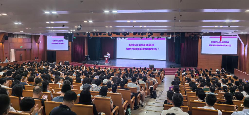教学管理与研究中心主任张彪从教学的角度做了以重衔接,养习惯,明志趣为主题的发言。他梳理了初中不同学段的育人目标和教学重点,阐述了学校的教学安排和课程特色,强调教学中教师对学生思维能力和创新精神关注的重要性。此外,张彪老师还为初一新生如何更好更快地适应初中的学习生活提供了宝贵的建议。