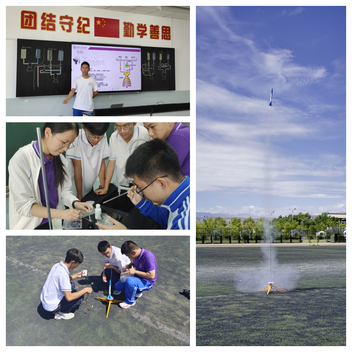 我深刻体会到了团队合作的力量。面对技术难题,我们没有退缩,而是集思广益,共同寻找解决方案。在制备KNSB时,因为电磁炉温度不稳导致失败,但谁都没有放弃,我们拿小铁盆自制了盐溶加热装置,最后成功制作出了硝糖燃料。那一刻,思维碰撞出的火花,如此绚烂夺目。