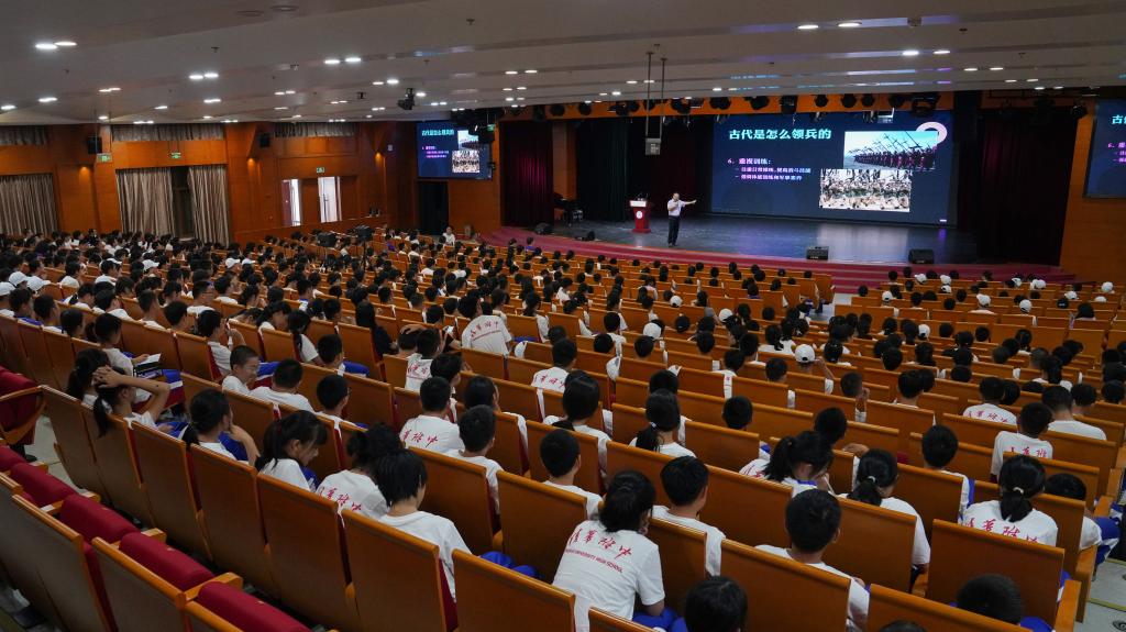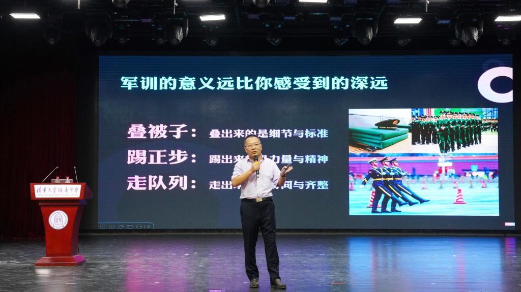 首先,肖柯同志以多维度的视角,深入浅出地阐释了国防教育的深远意义。他指出,看似简单重复的队列动作,实则锤炼的是同学们精益求精、追求卓越、斗志昂扬、团结协作的精神。随后,肖柯同志从规章制度、训练要求、作战体系等方面详细介绍了古代领兵作战的智慧与策略。紧接着,他又结合当前的科技发展,从国防的角度解读了复杂的国际形势以及我国面临的战略态势。对于在座的初一同学们,肖柯同志也寄予厚望,勉励大家要提纯对祖国的忠诚性、升维对生命的激情度、聚焦对变革的关注力,为实现强国梦、强军梦贡献附中力量。