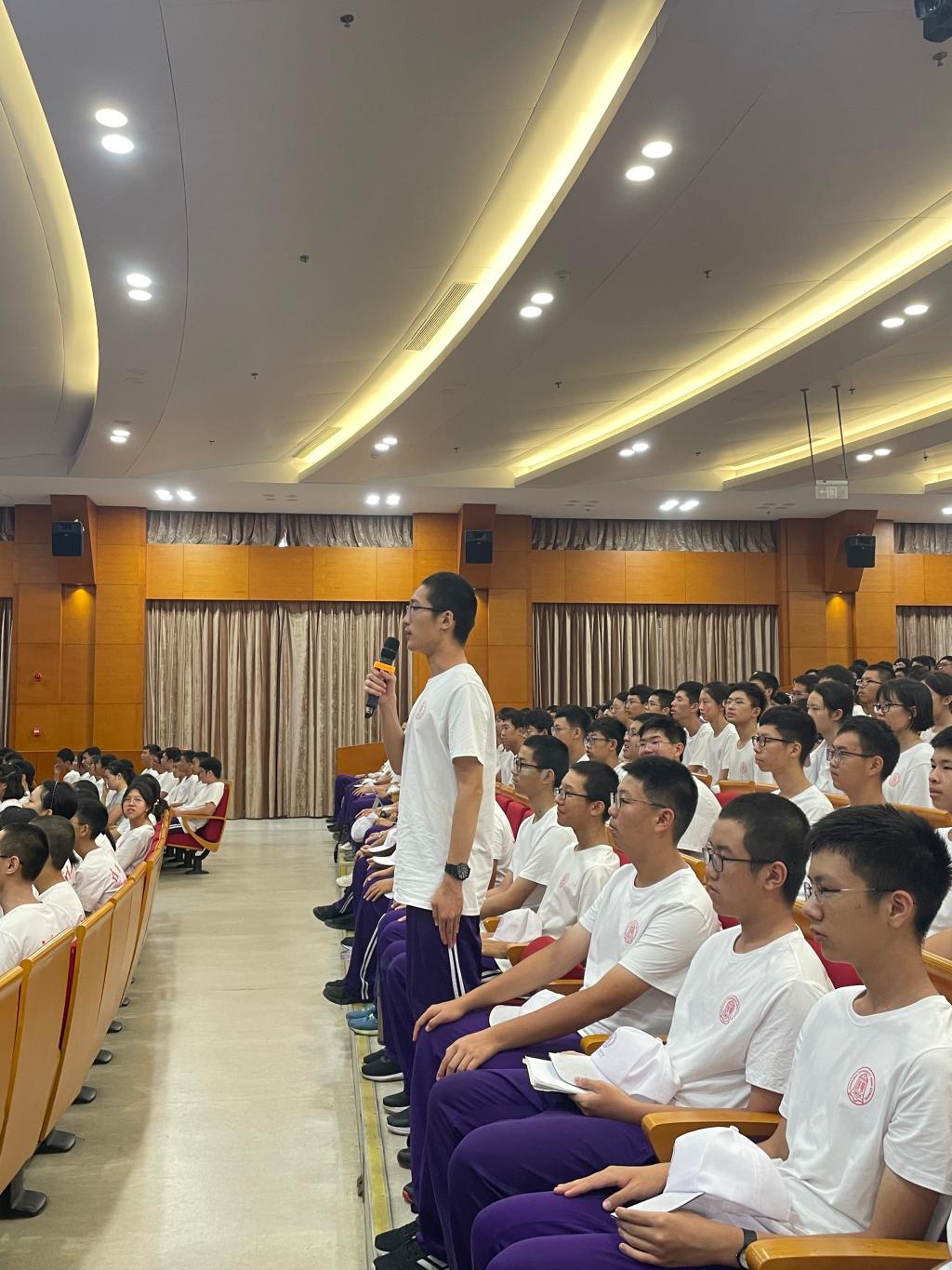 在讲座过程中,肖政委多以提问的形式引出新的话题,启发同学们深入思考,与同学们互动频繁。在讲座的最后,他鼓励同学们以满腔热血投入军训,强国逐梦,挺膺担当,让青春在军训的旗帜下逆风飞扬。同学们认真聆听讲座,踊跃提问,积极思考,现场掌声不断,气氛非常活跃。