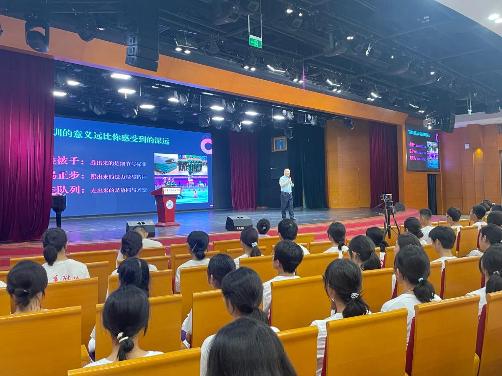 在讲座开篇,肖政委从多个维度带领同学们解读军训的意义。在叠被子、踢正步和走队列这军训传统“三大件”背后,是对细节和标准的追求,对力量和意志的锻炼。看似简单重复的训练,实则锤炼的是同学们精益求精、追求卓越的精神。军训不仅是增强体质、磨练意志的重要途径,更是培养爱国主义精神和集体主义意识的关键环节。