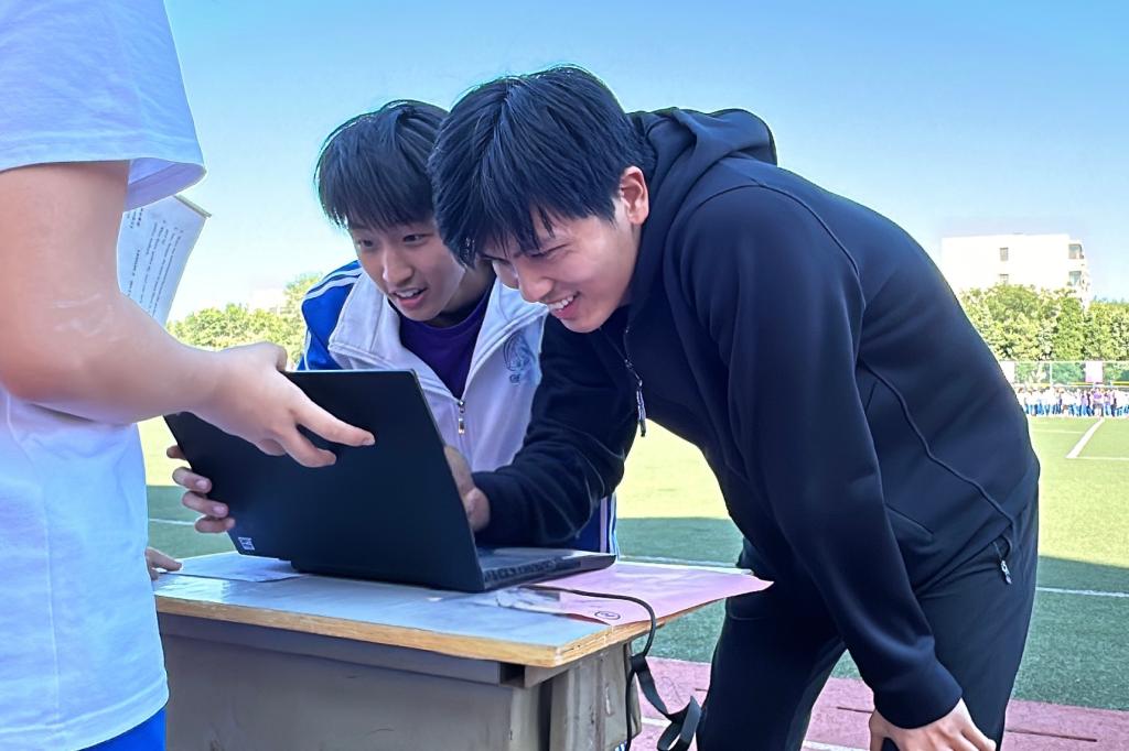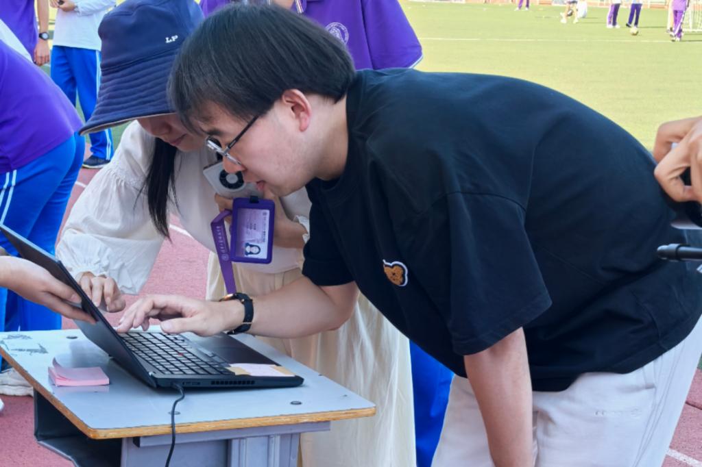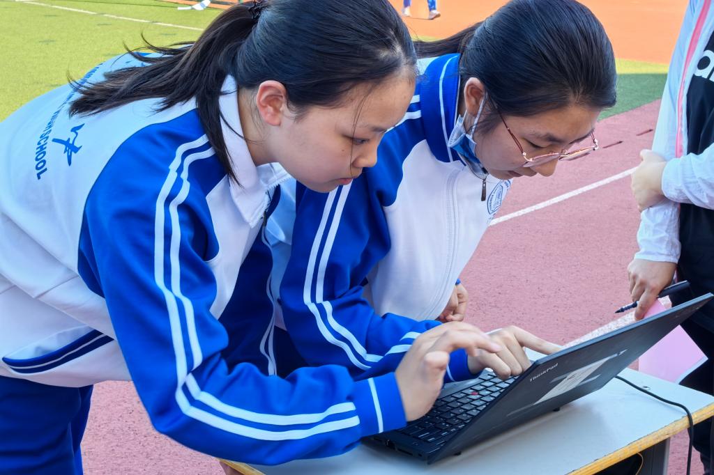 此次比赛延续首届赛制,并创新性地邀请各科教师加入班级代表队,与学生并肩作战,进一步开展学科融合。每班随机派出16名同学并特别邀请一名任课教师代表班级与随机配对的班级进行对战。比赛形式包括50米折返跑和“天学网”单词PK,参赛者之间通过击掌接力。现场氛围紧张而热烈,尤其是教师们的出场,更是引来阵阵欢呼。每位选手都全力以赴,为班级荣誉而战,在跑道上驰骋,在屏幕前争锋。