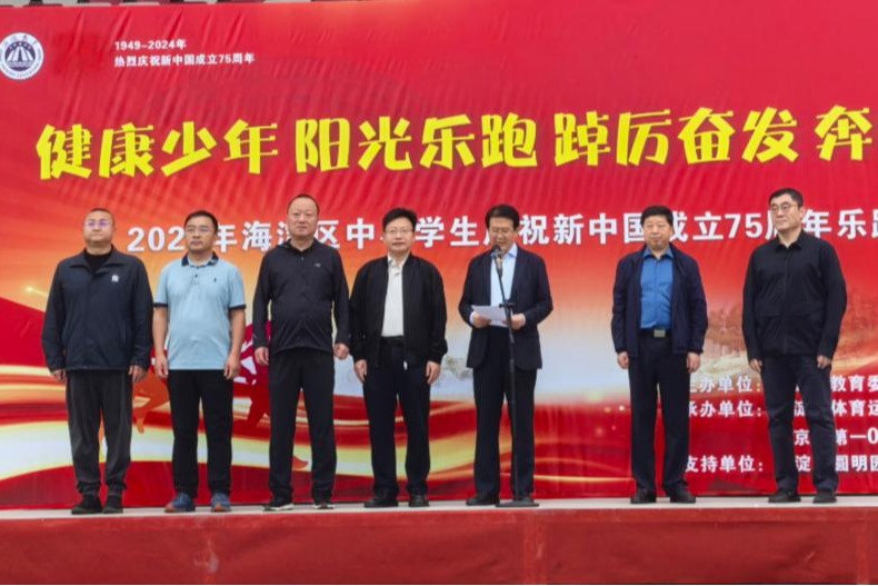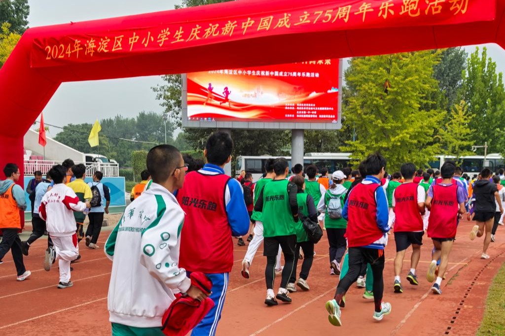 清晨,伴随着秋日的微风,同学们在北京一零一学校的操场上整齐排列,跟随领操员的示范,热情洋溢地做起热身运动,为即将开始的乐跑活动做好充分准备。随着清脆的发令枪响,圆明园步行道内一千余名海淀师生代表一齐冲出起跑线,在绿荫小道上快乐奔跑,充分展现青少年的朝气和活力。