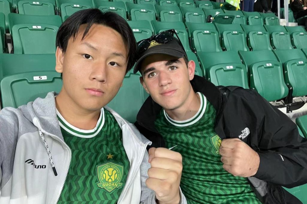 张芳植带领伙伴Cantelmo Carlo观看国安队足球比赛