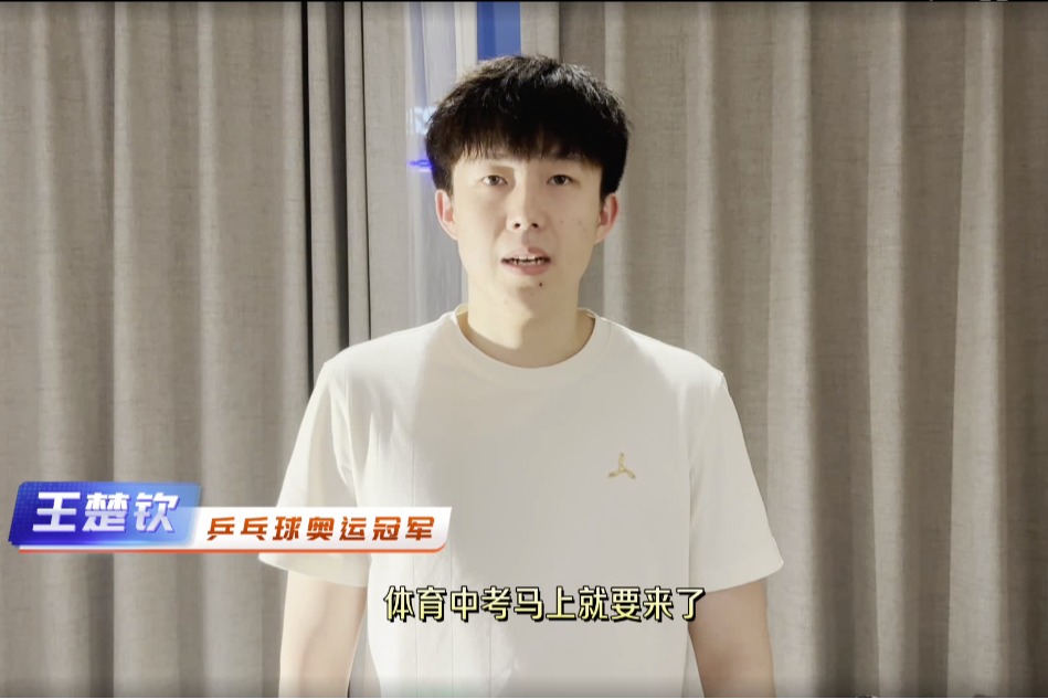 奥运冠军王楚钦祝初23学部同学们体育中考顺利