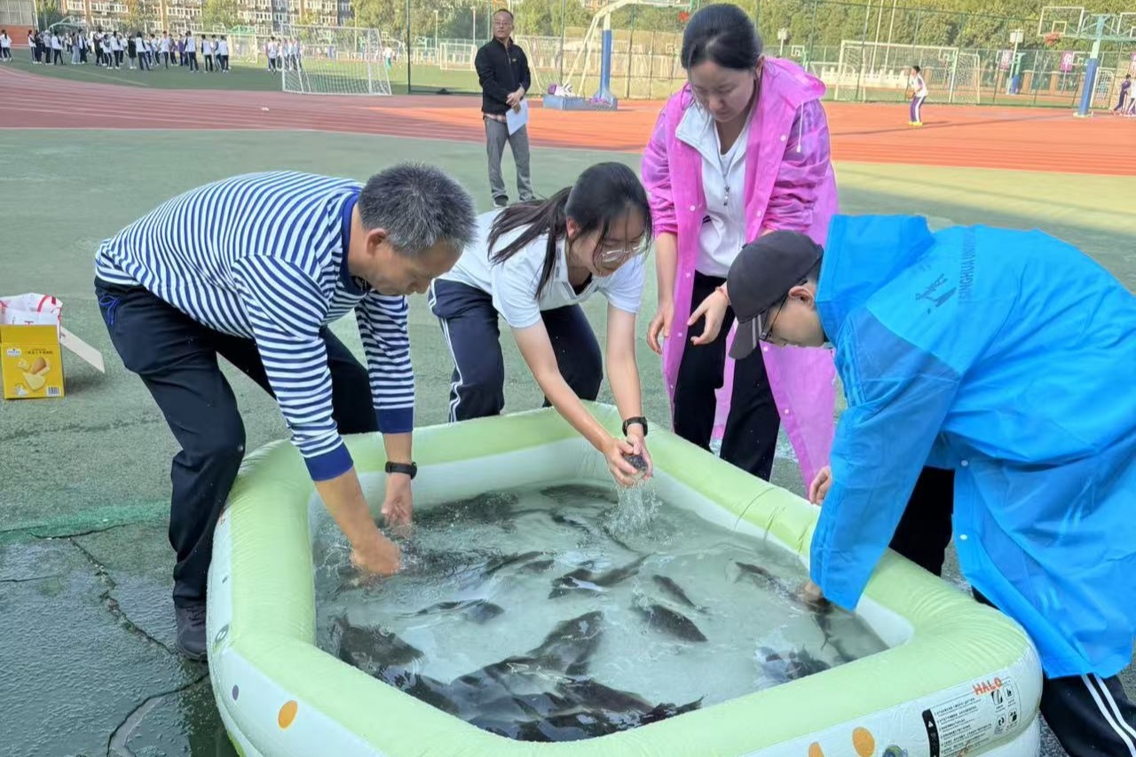 高2209班学生和家长快乐抓鱼