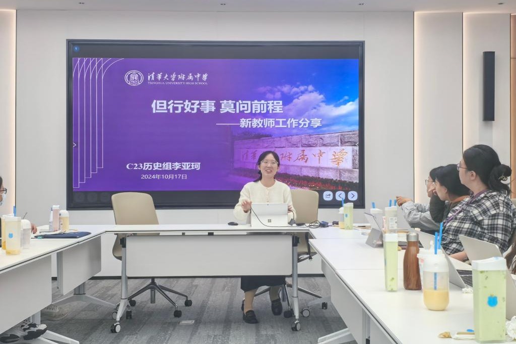 第二位分享的是初23学部青年教师代表李亚珂老师。李亚珂老师围绕“但行好事,莫问前程”,讲述了自己一年来在初23学部的德育工作经历和心得体会。在学生梯队建设方面,李亚珂老师协助管理年级学生助理。李老师表示,在初23学部主任张晓琼老师和学部副主任周小玲老师的指导帮助下,自己逐渐从一个学习者变成实践者,最后变为监督者。同时,代理班主任、暑期支教以及协助年级各项事务的工作都锻炼了自己的德育工作能力。