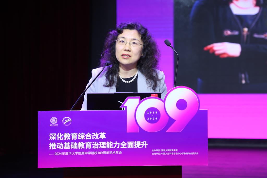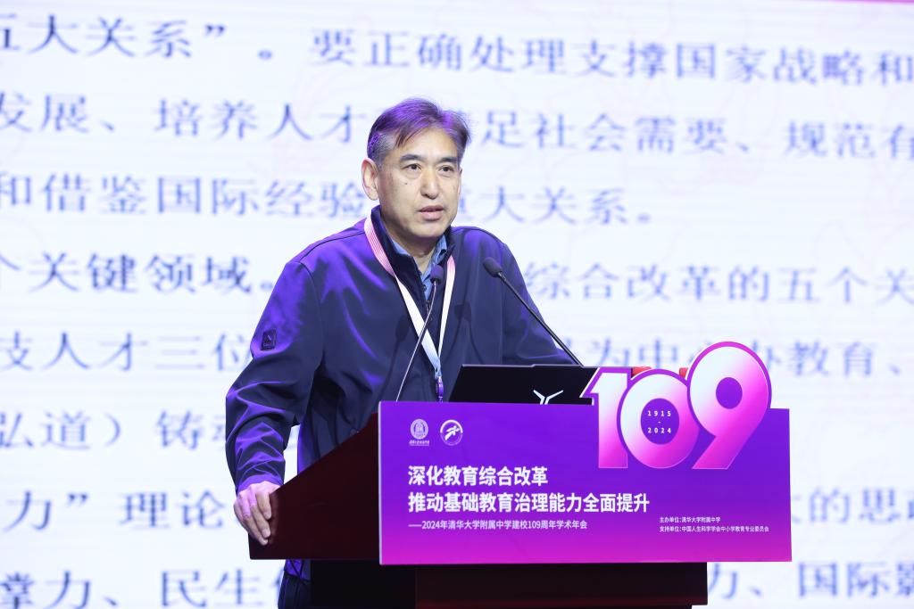 中国人民大学吴玉章学者特聘教授、教育学院学术委员会主任、新时代中国特色社会主义教育研究中心主任刘复兴以《聚焦关键问题,提升基础教育治理能力》为题作报告。刘教授介绍了二十届三中全提出的“构建支持全面创新体制机制”,以及全国教育大会提出的教育强国理论体系的重要意义,带领大家共同思考新时代人才培养新标准内化形成的“基础教育治理需要面对的若干结构性关键问题”。他强调,提升基础教育治理能力要从问题导向出发,处理好规范有序与激发活力的关系;提升思政引领力、人才竞争力、科技支撑力;推动教育、学校与社会互动共生、协同发展,提升社会协同力;探索“跨文化”人才培养模式,提升国际影响力;建设高质量基础教育体系的数字技术基础;以教育家精神引领中小学教师队伍建设,夯实人才培养基础力量;提升教师履职能力;以科学的世界观与方法论指导基础教育治理。