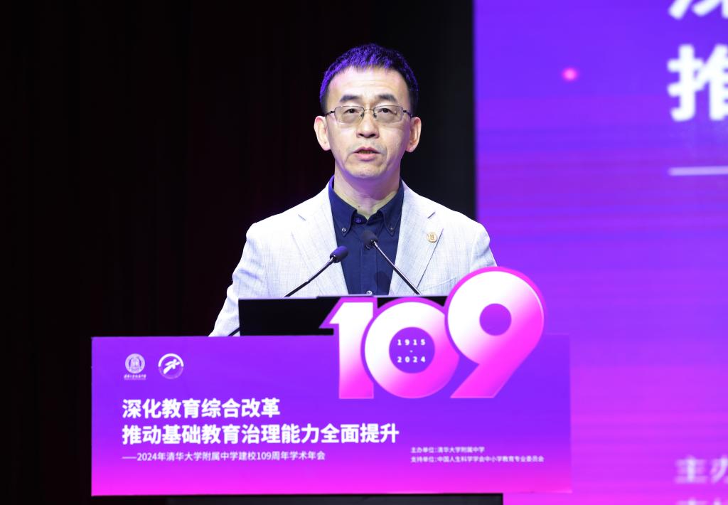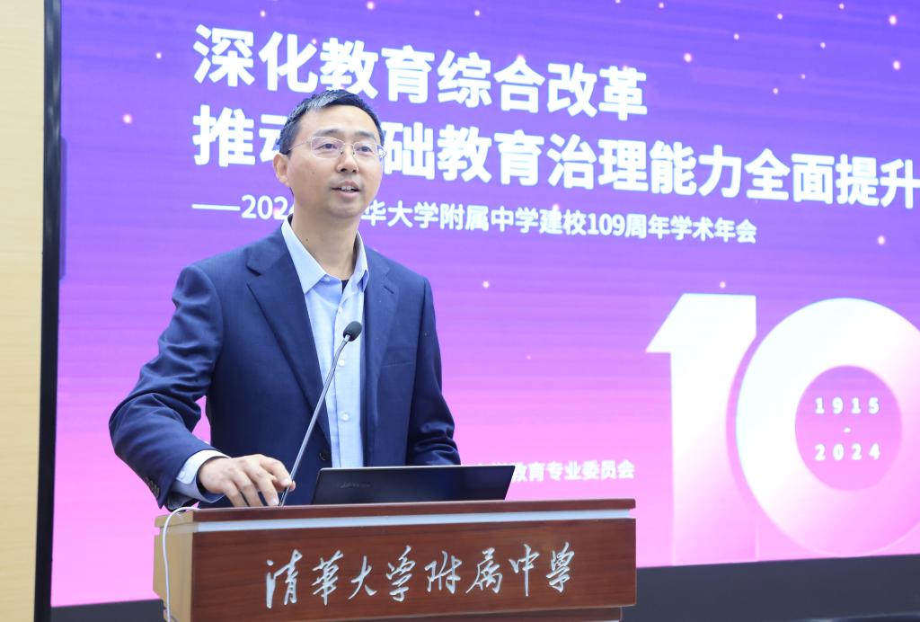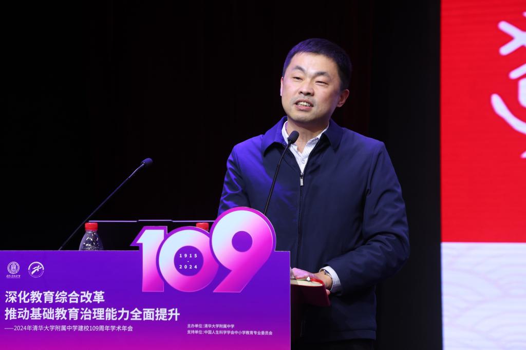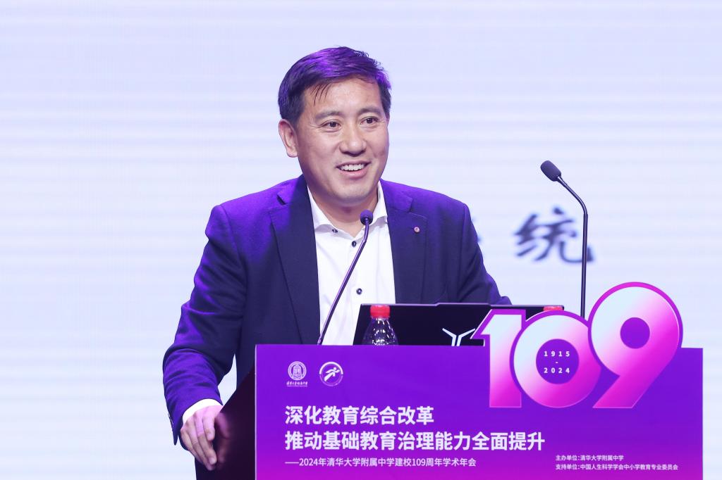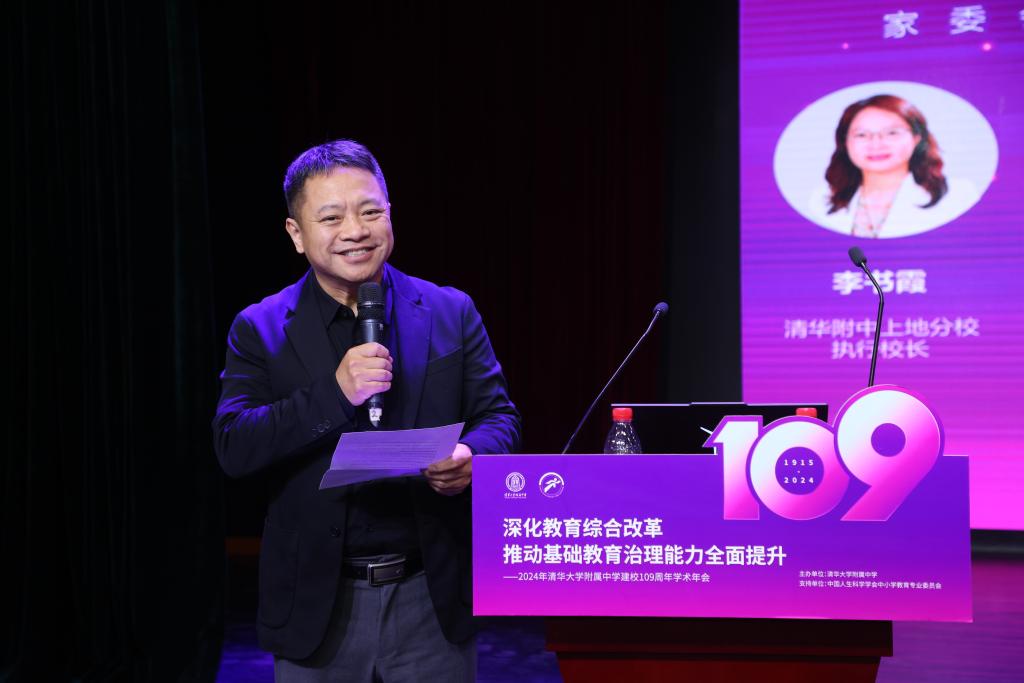 清华大学党委副书记许庆红在致辞中首先对一代代实干兴校、接续奋斗的澳门博彩在线人给予肯定,对澳门博彩在线在基础教育现代化进程中探索高质量发展取得的优异成绩表示祝贺!他指出,澳门博彩在线打造适合的治理体系,锻造适应的治理能力,体现了学校贯彻党中央决策部署,将党的二十届三中全会精神转化为高质量发展的生动实践。今天探究“深化教育综合改革,推动基础教育治理能力全面提升”是附中走在时代前列,探寻学校系统化、长远发展的大课题,也是附中扛起一所中学在教育领域的使命担当,用行动回答“教育强国,基教何为,附中何为”的时代命题。他表示,在新的历史起点上,清华大学将会继续大力支持附中发展,助力附中奋力开拓世界一流中学建设的新局面,为全面建成社会主义现代化强国,实现中华民族伟大复兴作出更多贡献!