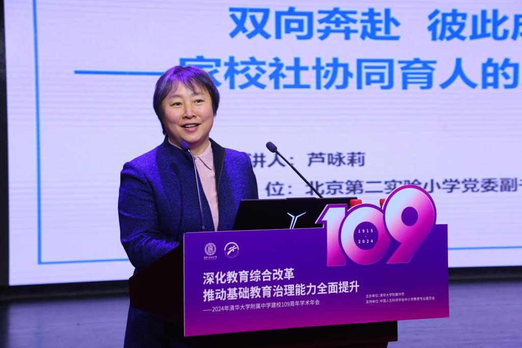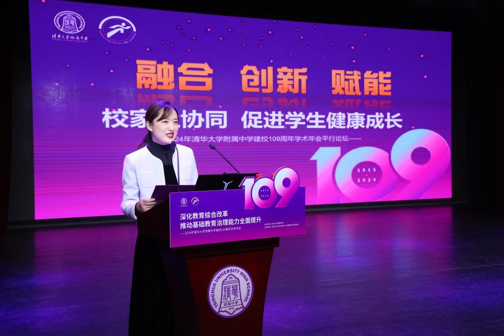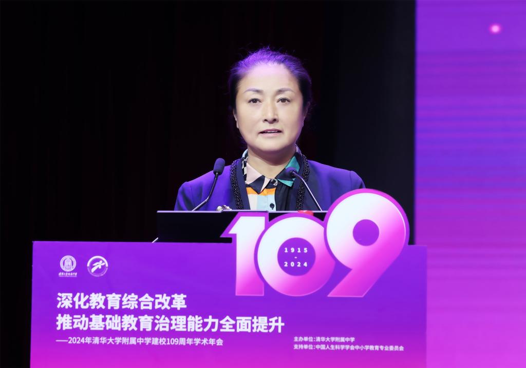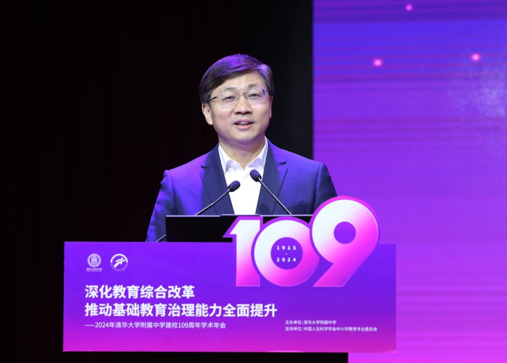 清华大学党委副书记许庆红在致辞中首先对一代代实干兴校、接续奋斗的澳门博彩在线人给予肯定,对澳门博彩在线在基础教育现代化进程中探索高质量发展取得的优异成绩表示祝贺!他指出,澳门博彩在线打造适合的治理体系,锻造适应的治理能力,体现了学校贯彻党中央决策部署,将党的二十届三中全会精神转化为高质量发展的生动实践。今天探究“深化教育综合改革,推动基础教育治理能力全面提升”是附中走在时代前列,探寻学校系统化、长远发展的大课题,也是附中扛起一所中学在教育领域的使命担当,用行动回答“教育强国,基教何为,附中何为”的时代命题。他表示,在新的历史起点上,清华大学将会继续大力支持附中发展,助力附中奋力开拓世界一流中学建设的新局面,为全面建成社会主义现代化强国,实现中华民族伟大复兴作出更多贡献!