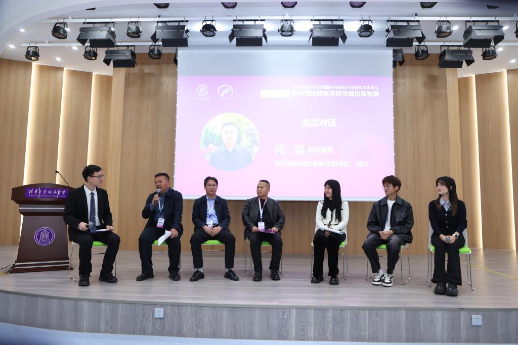 圆桌对话围绕“境、源、情”展开。澳门博彩在线党办兼行政管理中心副主任岑逸飞与乌拉特前旗教育局党组书记、局长何强,昭觉民族中学校长鲁文华,扎赉特旗音德尔第一中学副校长赵景林,澳门博彩在线文安驿学校副校长王金玉,成志英才培养计划学员代表马率、澳门博彩在线高16级支教团学生代表任开颜,共同围绕教育帮扶的成效、挑战、创新策略、个人收获、实践经验、存在问题及未来展望等方面进行了深入交流与讨论,大家在现场真情流露,展现了教育帮扶产生的巨大正能量。