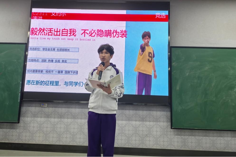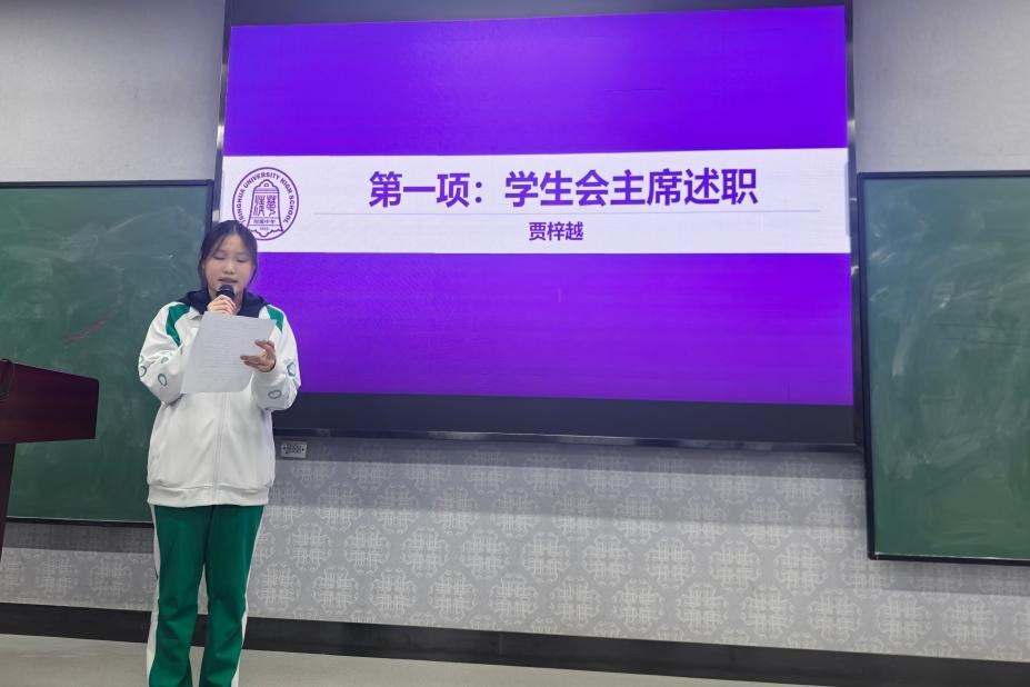 学生会主席贾梓樾同学主持并做学生会工作述职