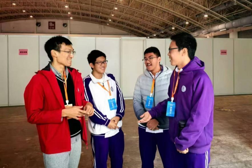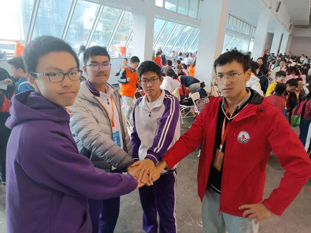 师生最后一轮加油打气,陈泽林(左1)、丁靳洋(左2)、郝泽昀(左3)