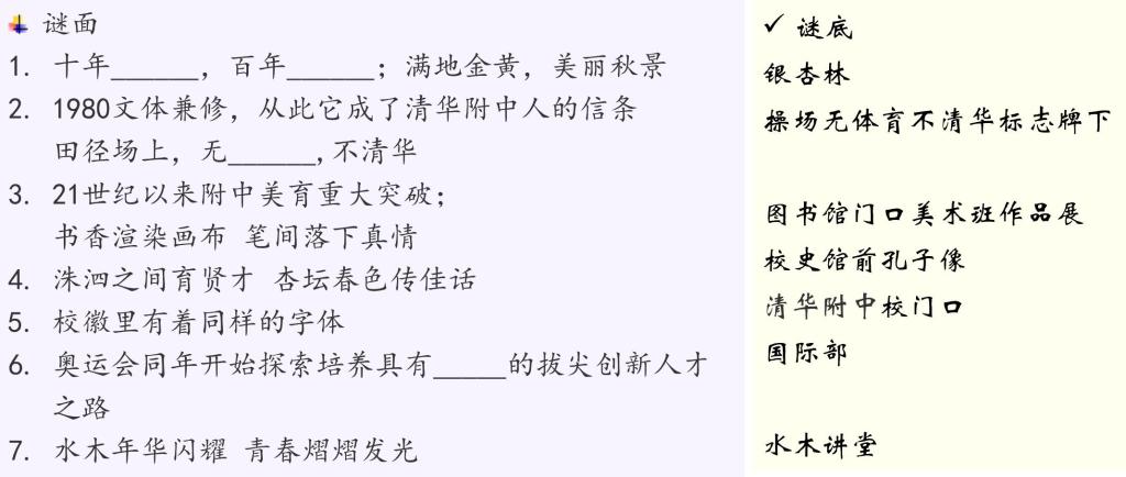 爱校寻宝谜面和谜底