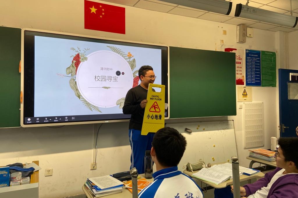 学生在校园寻宝活动中进行分享