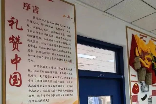 高23学部的班级外墙布置,是一组《礼赞中国》专题展,每个班根据各自的分主题设计制作,献礼国庆75周年。