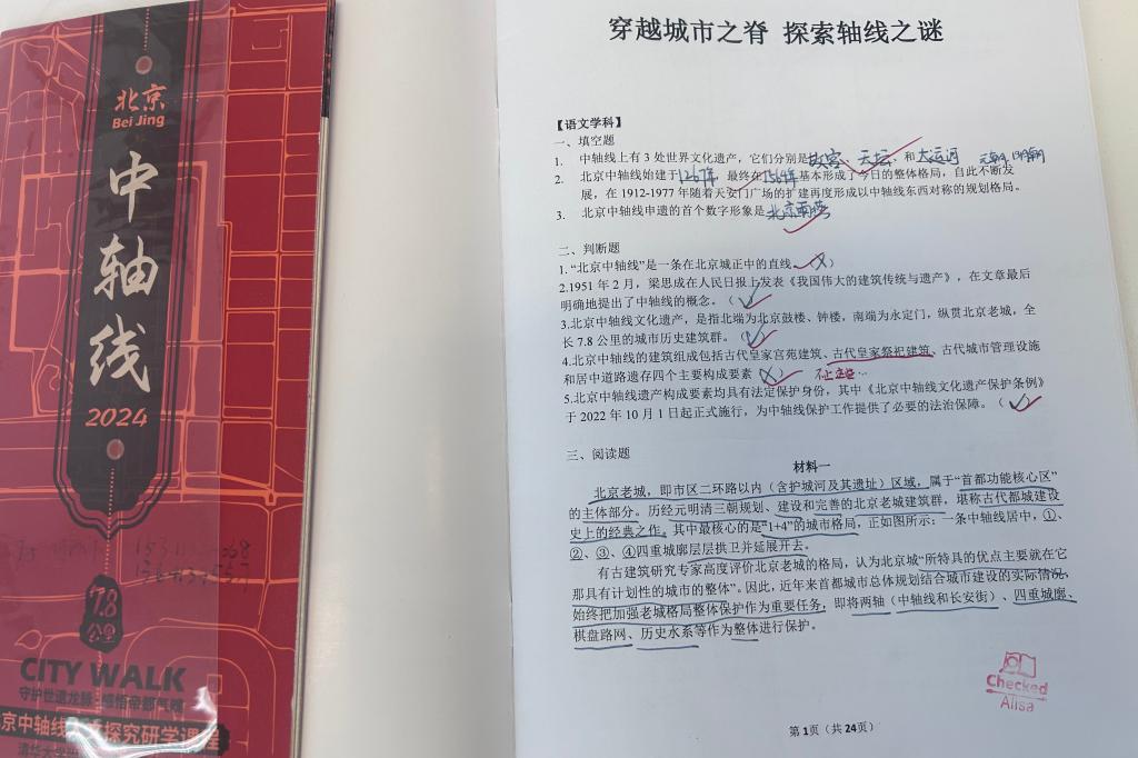 为了增添活动的趣味性和教育意义,各学科老师以北京中轴线为背景,精心设计了一套既贴合学科知识又深含文化意义的题目。学生们得以在行走中观察、思考,将书本知识与现实生活紧密相连,实现了理论与实践的深度融合。