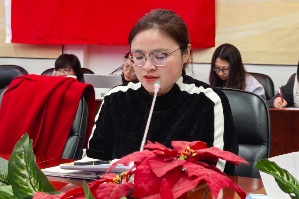 自由发言环节,入党积极分子李冰清同志发表参会感悟。她指出,将始终以身旁的优秀党员为楷模,大力强化理论知识的深度研习,积极踊跃地探寻创新工作模式与思维路径。其间,她特别提及阅读习近平总书记《论教育》著作的深刻体会,深感受益良多。她将以更为严格且全面的标准自我砥砺,朝着成为一名光荣的中国共产党党员的伟大目标坚毅前行。