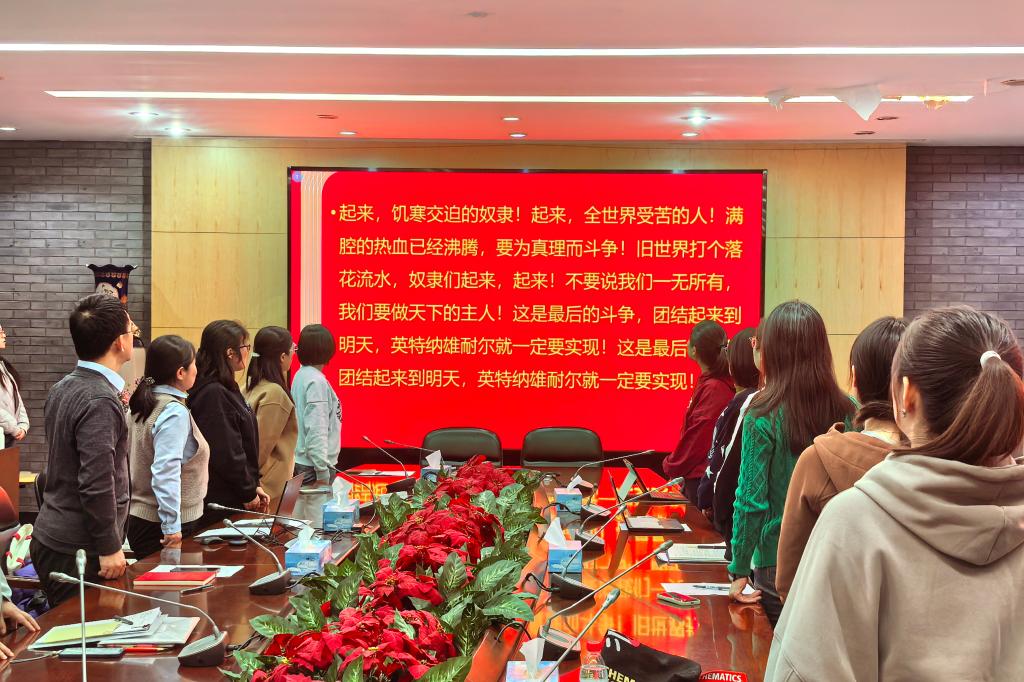 会议最后,全体起立唱国际歌,大会在庄严的氛围中圆满结束。与会人员还进行了合影留念,共同见证了这一重要时刻。