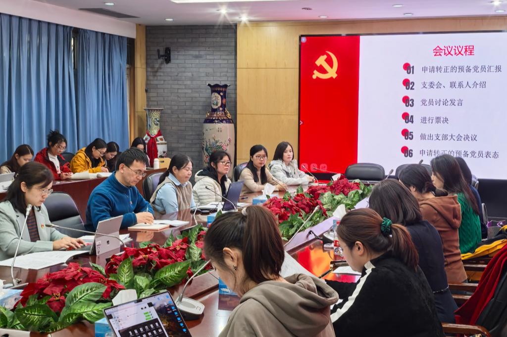 11月21日下午,澳门博彩在线英语教研组党支部在B102会议室召开预备党员周维纬同志的转正大会。此次大会旨在严格按照《中国共产党章程》和《中国共产党发展党员工作细则》的相关规定,对周维纬同志的入党申请进行全面审议和表决。