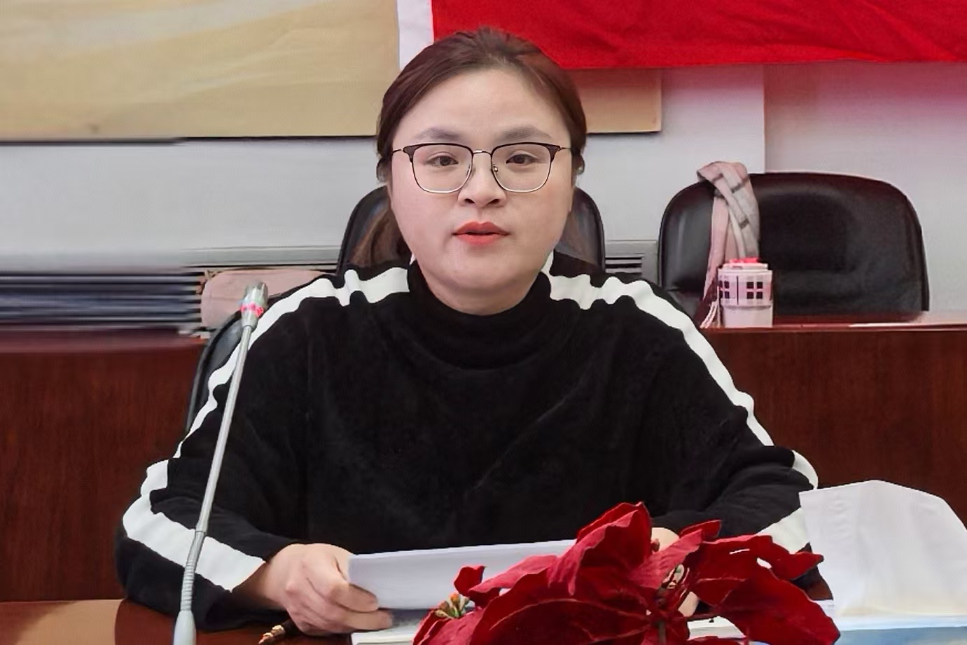 支部书记黄丽梅主持本次预备党员发展大会